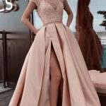 2024 Платье Для Выпускного Вечера С Короткими Рукавами И Вырезом По Бокам С Лифом Из Бисера