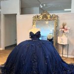 Бальное Платье Для Quinceañera Темно-Синего Цвета С Цветочными Аппликациями И Корсетом, Украшенным Бисером И Кристаллами.