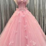 Бальное Платье Из Розового Тюля С Цветочным Кружевом, Бантом На Спине И Рукавами-Крылышками