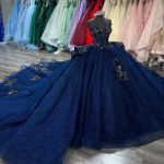 Блестящее темно-синее бальное платье из тюля украшено аппликациями ручной работы, имеет структурированный корсет и баску, создающие привлекательный силуэт. Шнуровка на спине со встроенным бюстгальтером обеспечивает регулируемую поддержку и надежную фиксацию. Пышная многослойная юбка придает эффектный объем, а мягкая атласная подкладка обеспечивает комфорт на протяжении всего вечера. Идеально подходит для празднования 15-летия, 16-летия или выпускного бала, благодаря изысканному блеску и безупречному пошиву.