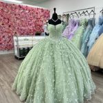 Бальное Платье Quinceanera Цвета Шалфея С 3D-Бабочками И Корсетом Из Кристаллов