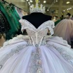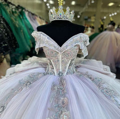 Это бальное платье для quinceanera с кружевной аппликацией сочетает в себе многослойный фатин, пришитые вручную пайетки и изысканную отделку, создавая сияющий образ, готовый к съёмке. Регулируемая шнуровка на спине и вшитый бюстгальтер обеспечивают надёжную и комфортную поддержку без громоздких швов. Длинный силуэт с усиленной подкладкой и структурированной юбкой создаёт эффектный объём, оставаясь при этом лёгким для непринуждённых движений. Искусный пошив и качественная отделка делают это платье идеальным для quinceanera, празднования шестнадцатилетия, выпускных вечеров и официальных мероприятий.