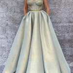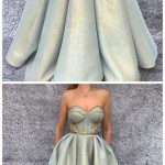 Зеленое бальное платье без бретелек с длинным корсетом для выпускного вечера