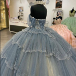 Элегантное бальное платье из тюля с открытыми плечами, многоярусной юбкой и отделкой из блестящих пайеток, идеально подходит для празднования королевских праздников, выпускных вечеров и маскарадов. Шнуровка на спине и вшитый бюстгальтер обеспечивают регулируемую поддержку и утонченный силуэт. Лёгкий многослойный тюль создаёт эффектный объём, сохраняя при этом воздухопроницаемость для длительного ношения. Платье создано для торжественных случаев и может быть сшито по индивидуальным меркам по запросу.