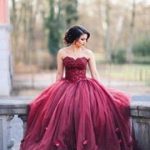 Бордовое Сказочное Нежное Бальное Платье С Кружевным Верхом, Свадебное Платье