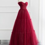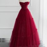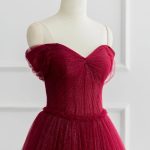Элегантное Выпускное Платье А-Силуэта Из Тюля С Открытыми Плечами: Длинное Вечернее Платье Блестящего Бордового Цвета