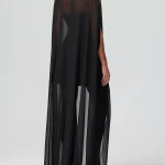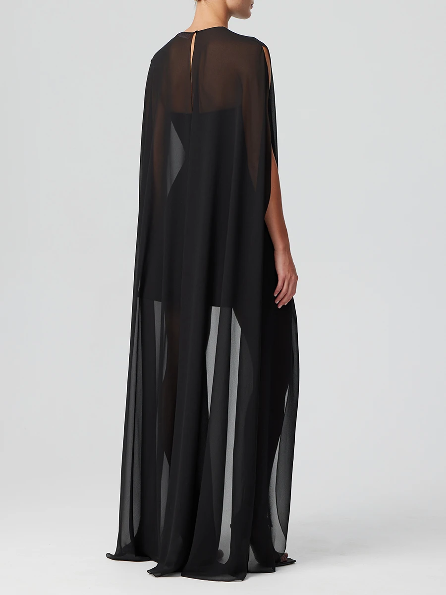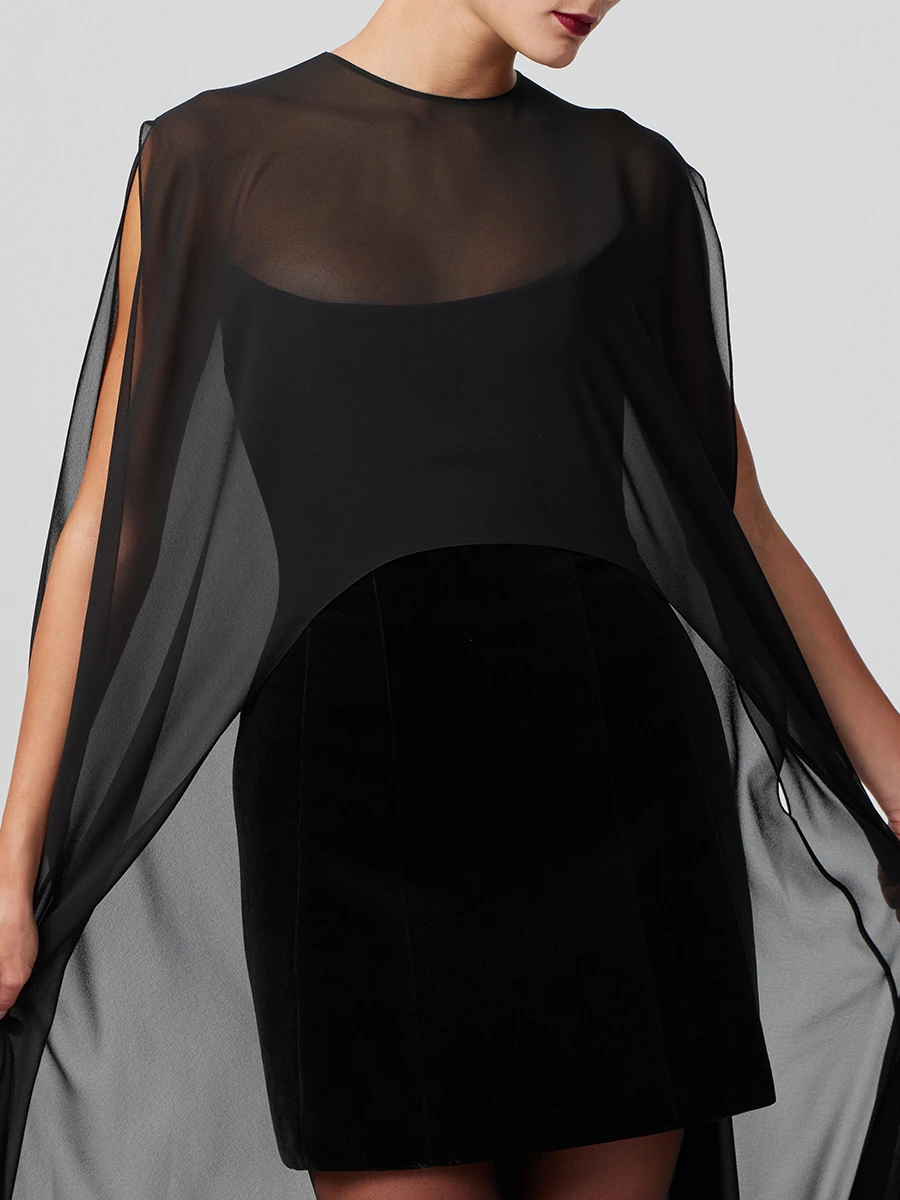 -Свободный крой и летящая полупрозрачная ткань-дымка — олицетворение хрупкости и женственности. -Длинные полы, уходящие в непрерывное движение — продуманный баланс элегантности и комфорта. -Кейп Роуз станет роскошным дополнением к вашему вечернему наряду.