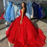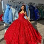 Насыщенный красный тюль и многослойные объемные цветочные аппликации создают эффектный силуэт, который идеально подходит для фотосессий, подчеркивая талию и придавая юбке объем. Пришитые вручную пайетки и вшитый бюстгальтер обеспечивают блеск и надежную поддержку даже при ярком освещении. Шнуровка на спине обеспечивает точную регулировку для удобной посадки, которая сохранит форму на протяжении всей ночи. Создано для кинсеаньеры, 15-летия, выпускного вечера и официальных мероприятий, где важен неизменный эффект.