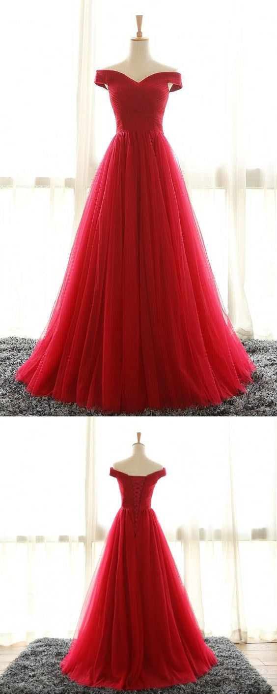 Красное Длинное Тюлевое Платье Для Выпускного Вечера С Открытыми Плечами 2024 Платье Для Выпускного Вечера Robe De Soiree Pas Cher MA002