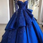 Асимметричное бальное платье королевского синего цвета с длинными рукавами и атласным платьем Quinceanera