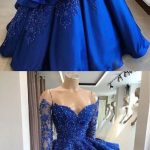 Нежное Блестящее Бальное Платье С Бисером, Атласное Королевское Синее Платье Для Выпускного Вечера С Рукавами, Платье Quinceanera
