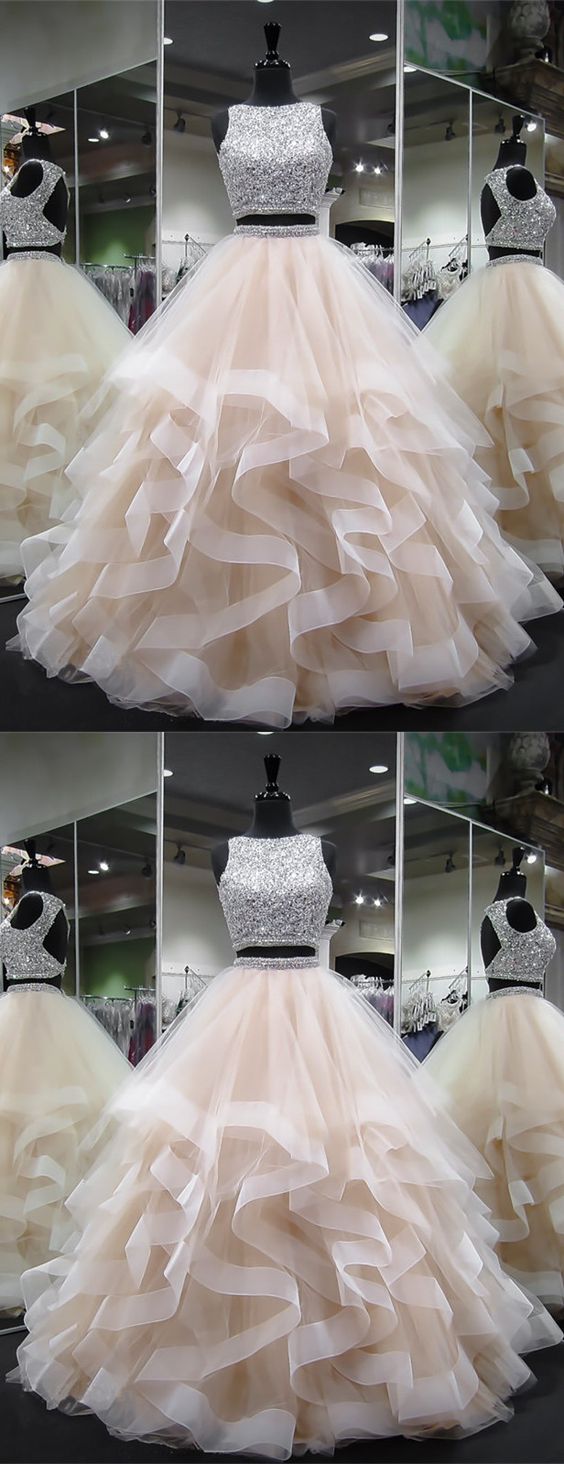 Ослепительный Укороченный Топ, Юбка Принцессы С Оборками, Платье Для Выпускного Вечера Из Двух Частей, Длинное Бальное Платье