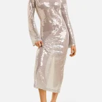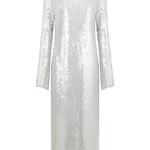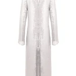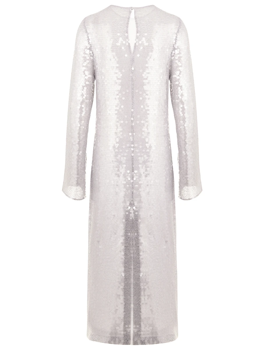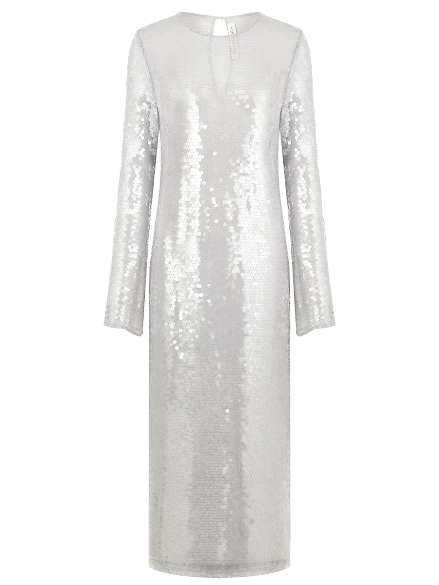 -Платье в серебряном цвете от FASHION REBELS. -Модель полуприлегающего кроя с длинными рукавами, круглым вырезом горловины и застежкой на пуговицы. -Платье дополнит яркие вечерние образы с удобными туфлями.