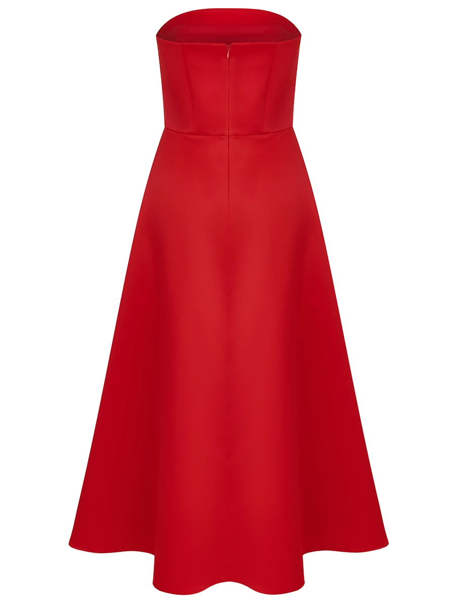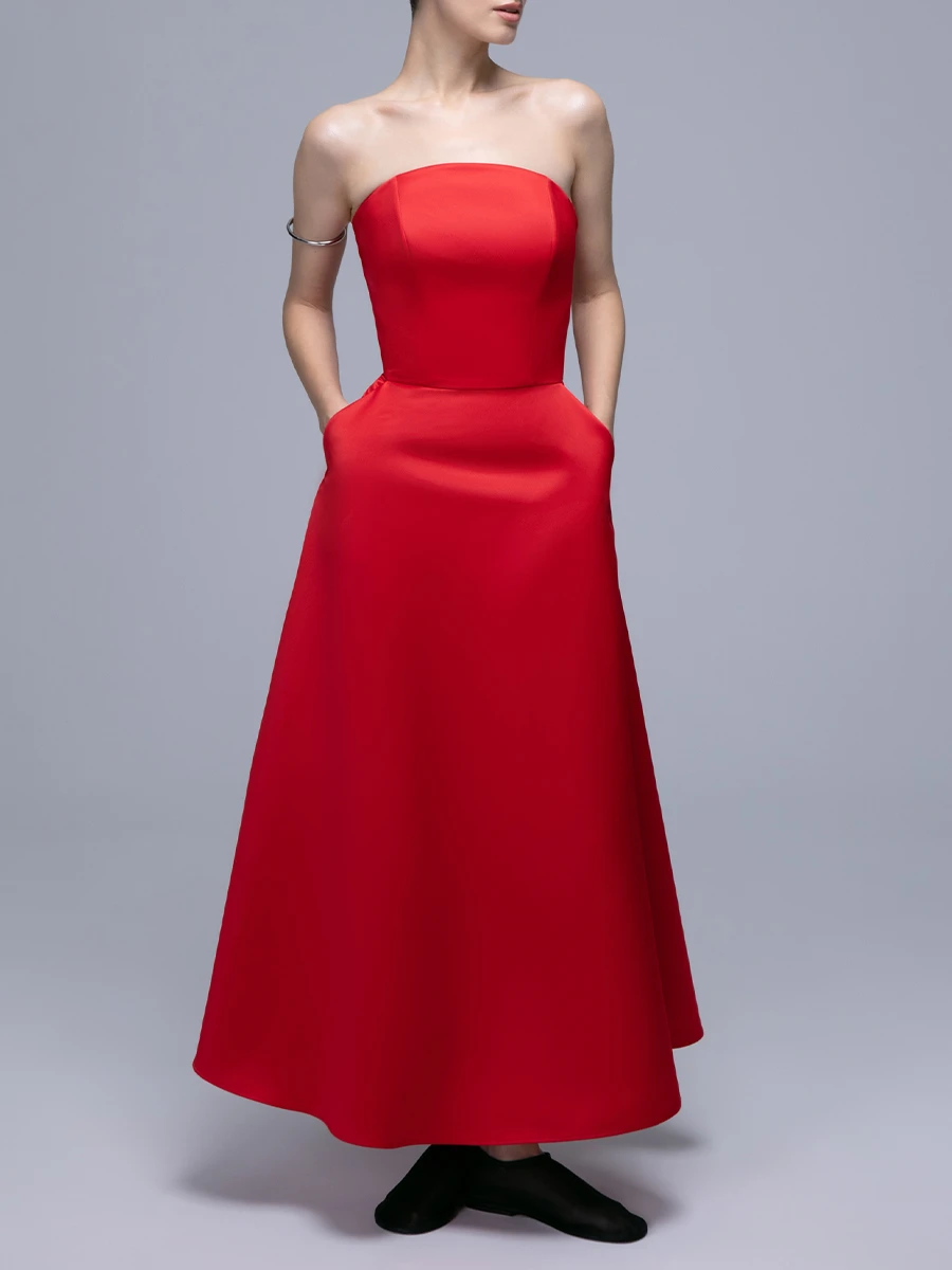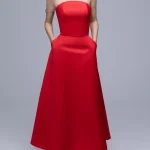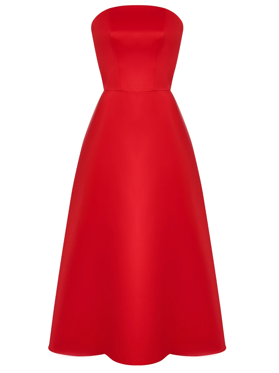 -Платье-бестселлер в новом ярко-красном оттенке от FASHION REBELS. -Изделие длины миди с удобными карманами с диагональным входом (в большинстве вечерних платьев такая деталь отсутствует). -Платье из плотной тафты с сатиновым блеском, приталенное, с расклешенной юбкой, но максимально облегченной конструкции.