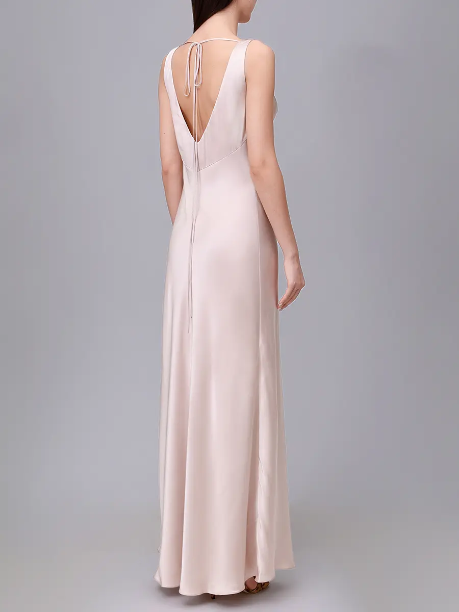 -Элегантное макси-платье с утончённым вырезом-качелька, который добавляет мягкости образу, от KAPSULA. -Гладкая, шелковистая ткань красиво облегает фигуру, создавая струящийся силуэт. -Минималистичный дизайн и отсутствие рукавов делают это платье идеальным выбором для особых случаев, подчеркивая женственность и стиль.
