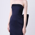 -Платье-бандо из атласного шелка от STELLA MCCARTNEY. -Оригинальная модель с открытой зоной декольте и открытой спинкой, акцент кроя на отрезной талии, баска, застежка-молния. -Данный товар отправляется только по полной предоплате.