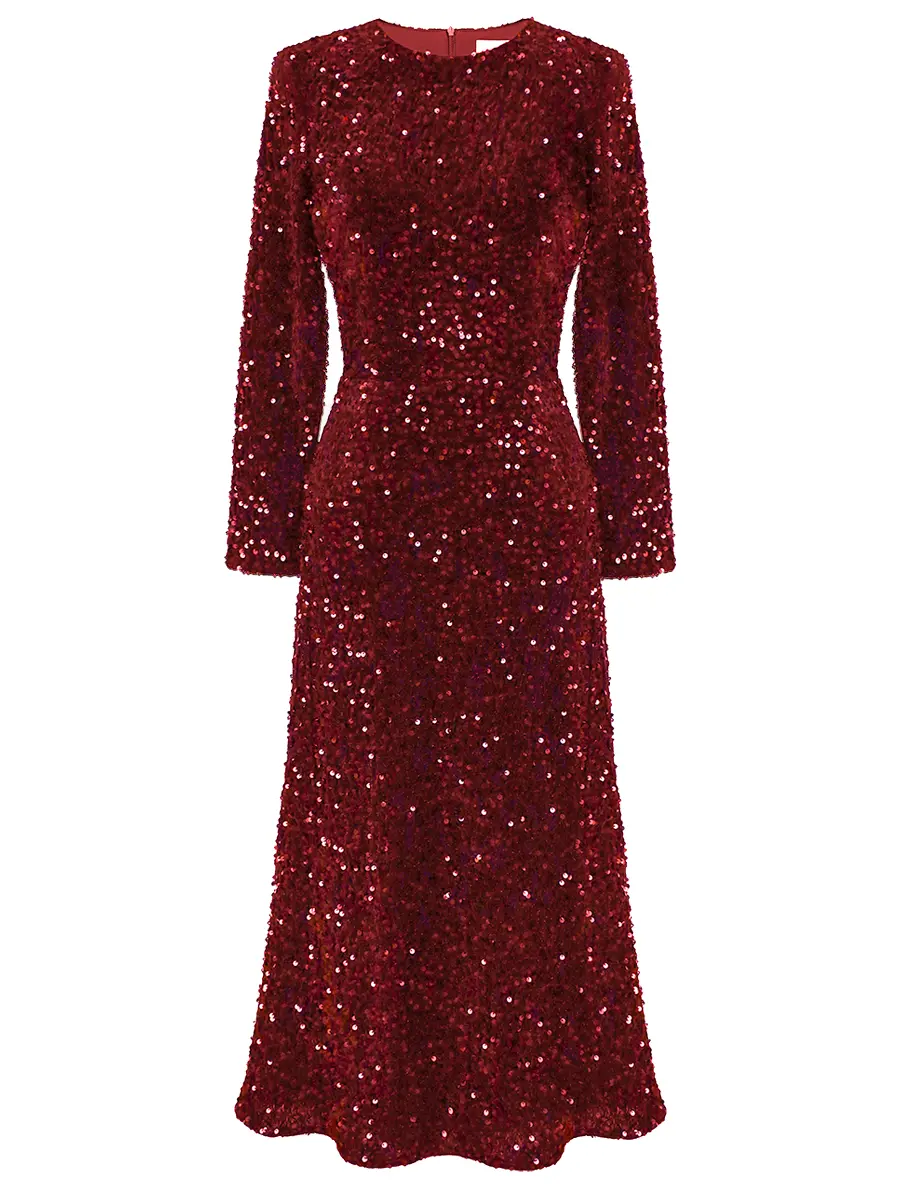 -Платье-миди в темно-красном цвете от POST MERIDIEM. -Модель приталенного кроя с классической круглой горловиной, длинными рукавами, подкладом и застежкой на молнию на спинке. -Сверкающая ткань, расшитая пайетками, выглядит эффектно и роскошно. -Прекрасным дополнением станут туфли-лодочки, объемные серьги и клатч. Параметры изделия: Длина изделия от талии до низа: 90 см; длина рукава (плечо+рукав): 69 см. Размер ХS: ОГ: 82 см; ОТ: 63 см; ОБ: 88 см. Размер S: ОГ: 86 см; ОТ: 68 см; ОБ: 92 см. Размер M: ОГ: 90 см; ОТ: 72 см; ОБ: 94 см. Размер L: ОГ: 92 см; ОТ: 76 см; ОБ: 100 см. Размер XL: ОГ: 102 см; ОТ: 80 см; ОБ: 105 см.