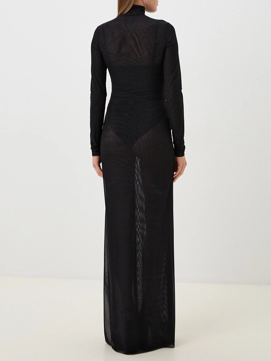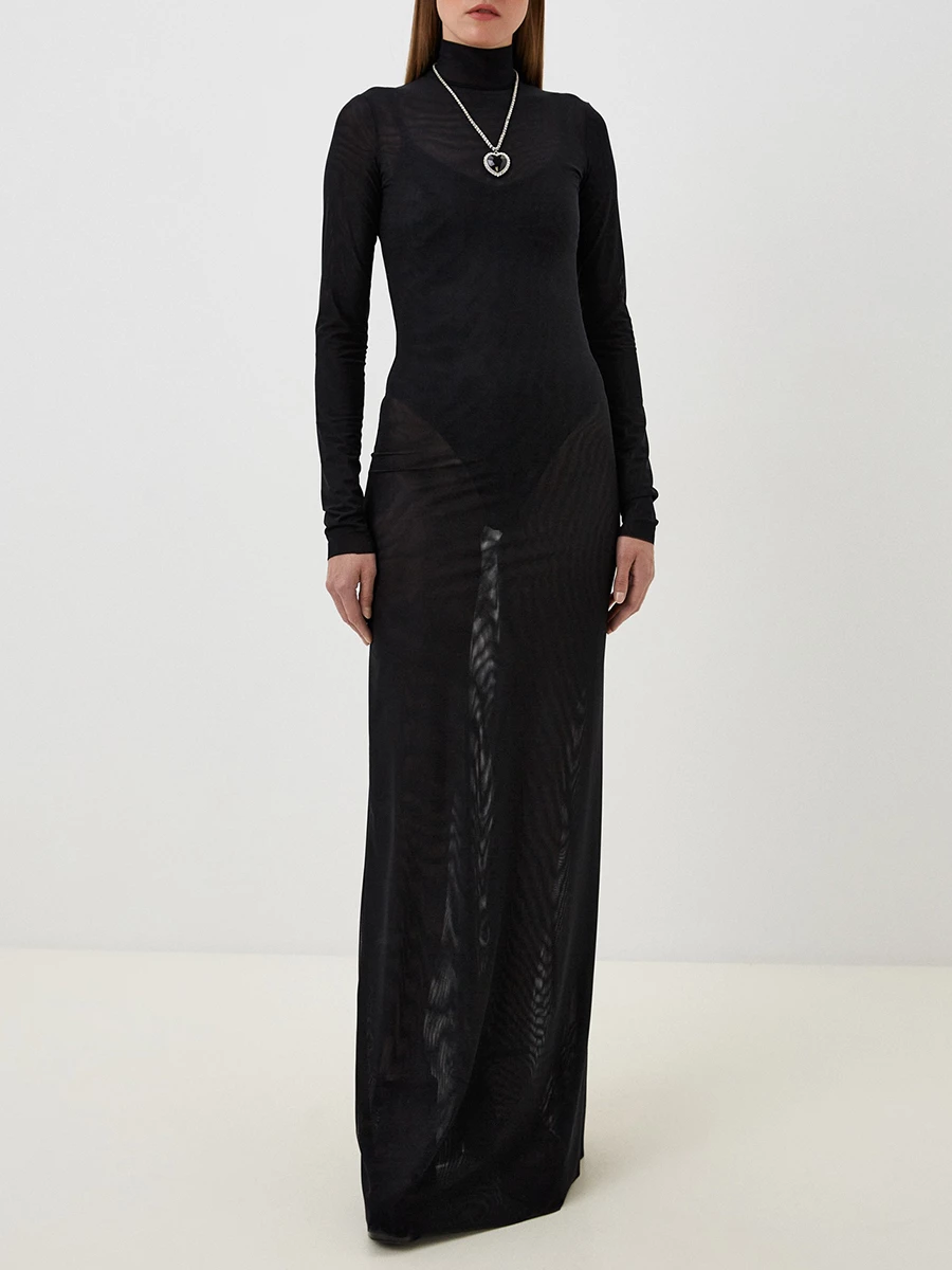 -Платье Carduus из двойной сетки от LI LAB. -Облегающий силуэт, длина макси, воротник-стойка, длинные рукава.