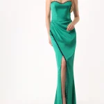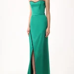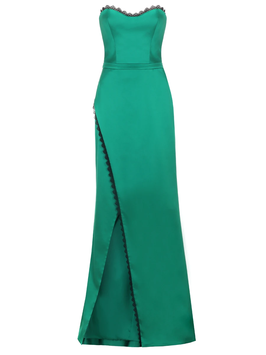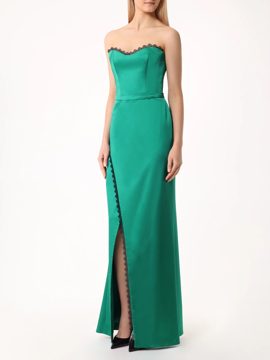 -Зеленое платье из атласа с деликатным блеском от MUZE. -Модель приталенного кроя с застежкой на молнию на спинке, глубоким фигурным декольте и разрезом с отделкой кружевом. -Вечерний образ дополнят базовые туфли-лодочки или босоножки на высоком каблуке. ВАЖНО! Изделие имеет индивидуальный крой и большемерит на размер, подберите размер по Вашим объемам или обратитесь к нам, и мы поможем сделать выбор (замеры в см, ОГ — обхват груди, ОТ — обхват талии, ОБ — обхват бедер): XS 42RU: ОГ 84-86, ОТ 64, ОБ 92, длина 76; S 44RU: ОГ 88-90, ОТ 68, ОБ 96, длина 76; M 46RU: ОГ 92-94, ОТ 72, ОБ 100, длина 76; L 48RU: ОГ 96-98, ОТ 76, ОБ 104, длина 76.