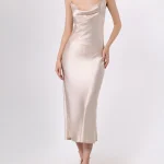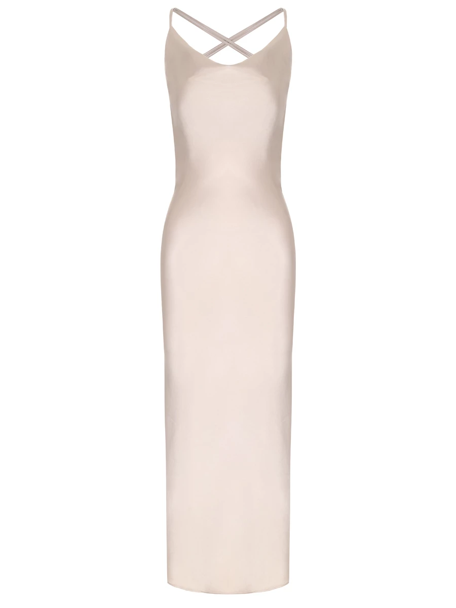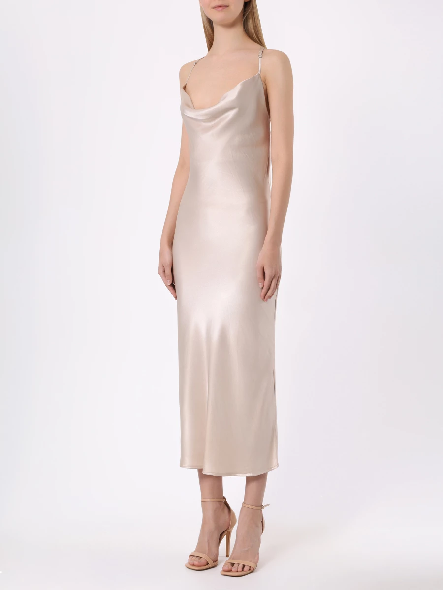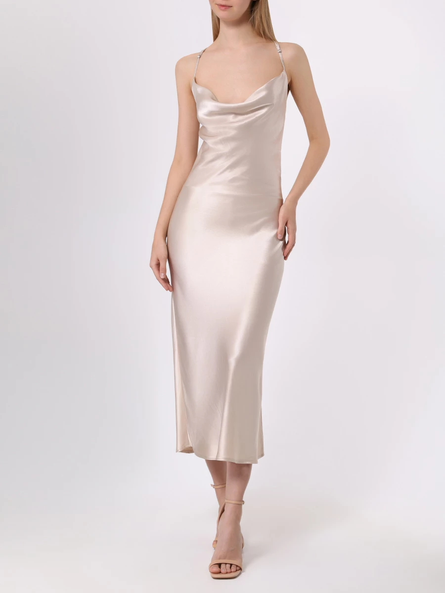-Платье из струящейся вискозы от THEONE BY SVETLANA ERMAK. -Модель с кроем по фигуре, расклешенным подолом, драпировками, тонкими регулируемыми перекрестными бретелями и глубоким вырезом на спине. -Классические линии кроя платья идеально обрисовывают женственный силуэт. Доставка товара осуществляется при условии предварительной оплаты картой на сайте (кроме заказов на самовывоз в городе Москва)