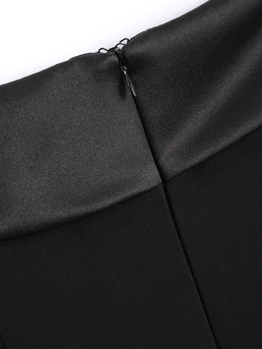-Черное платье-макси из вискозы от GODS OF FAME. -Модель с кроем по фигуре, вырезом и вставками из атласа, застежкой на молнию на спинке. -Лаконичное платье, в котором нет ничего лишнего, уместно дополнит коктейльные или вечерние мероприятия.