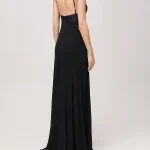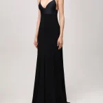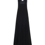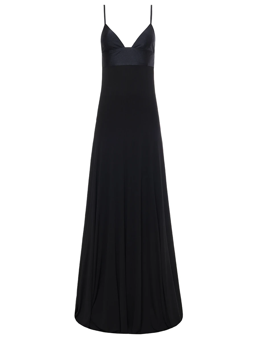-Черное платье из коллекции La Casa от JACQUEMUS. -Модель приталенного кроя с лифом из муслина, глубоким вырезом декольте, тонкими бретелями, расклешенным подолом из эластичного джерси и застежкой на потайную молнию сзади. -Классические линии кроя платья идеально обрисовывают женственный силуэт.
