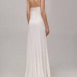 -Белое платье из коллекции La Casa от JACQUEMUS. -Модель приталенного кроя с лифом из муслина, глубоким вырезом декольте, тонкими бретелями, расклешенным подолом из эластичного джерси и застежкой на потайную молнию сзади. -Классические линии кроя платья идеально обрисовывают женственный силуэт.