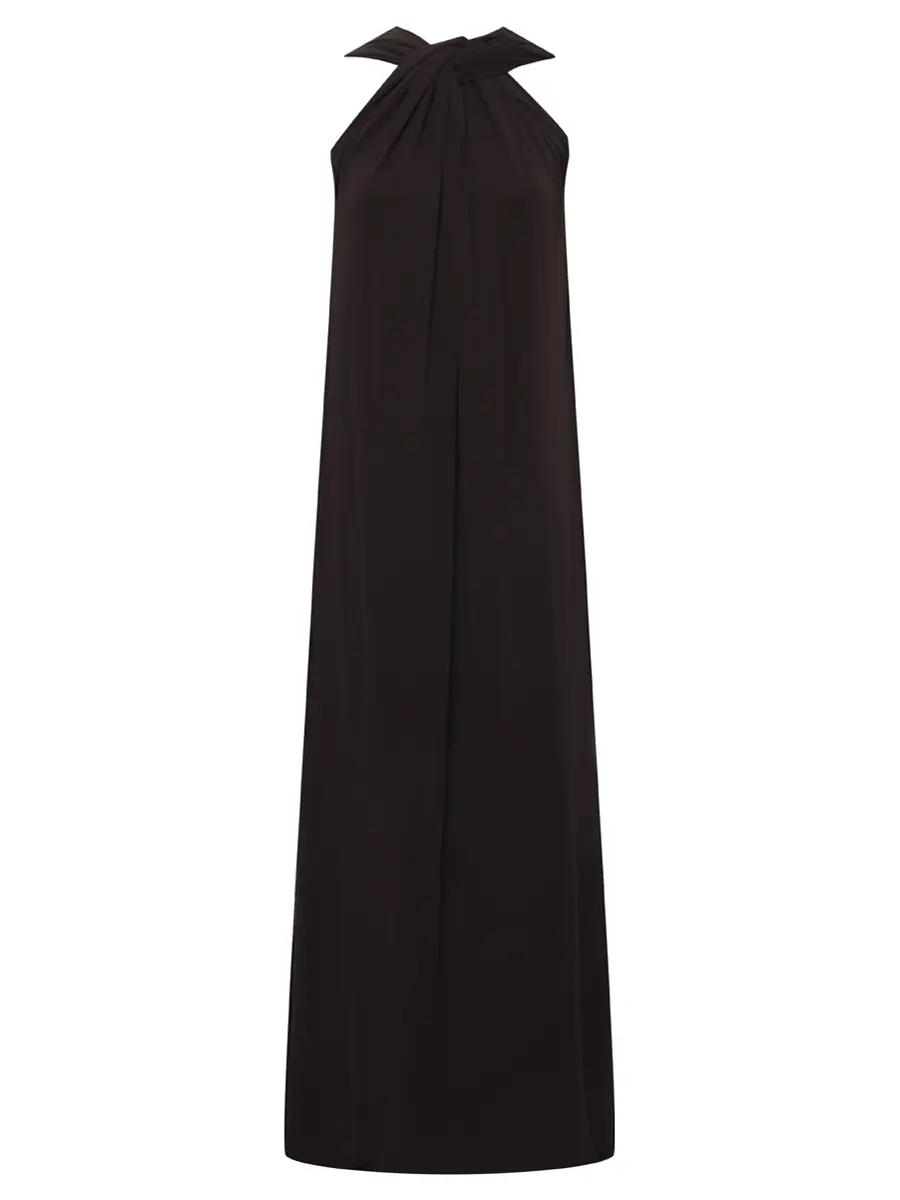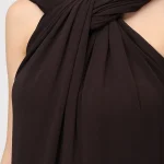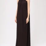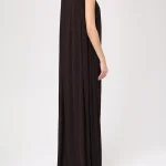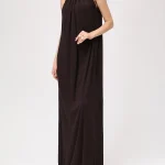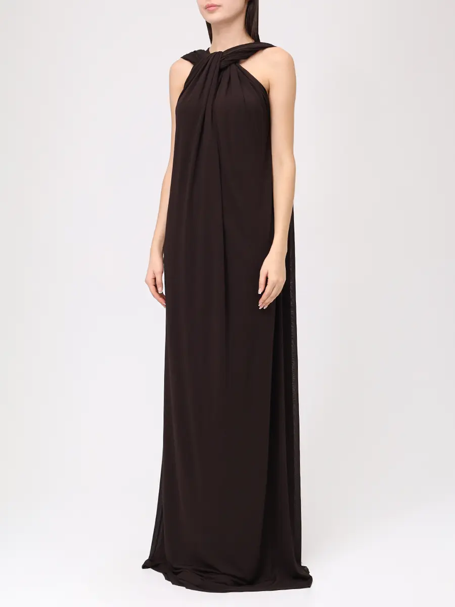 -Коричневое платье-макси из легкого вискозного джерси от JIL SANDER. -Модель свободного силуэта без рукавов со сборками и перекрестными бретелями спереди уместно дополнит коктейльные или вечерние мероприятия.