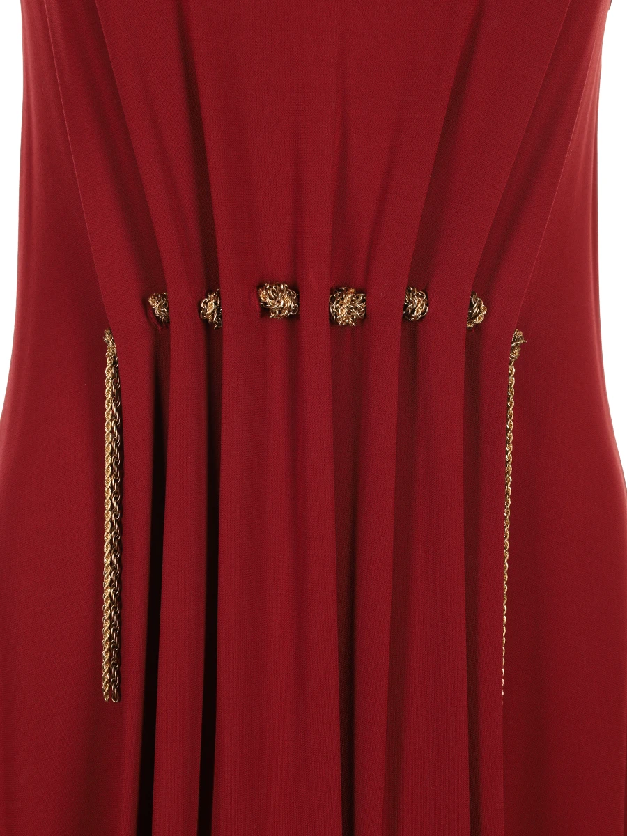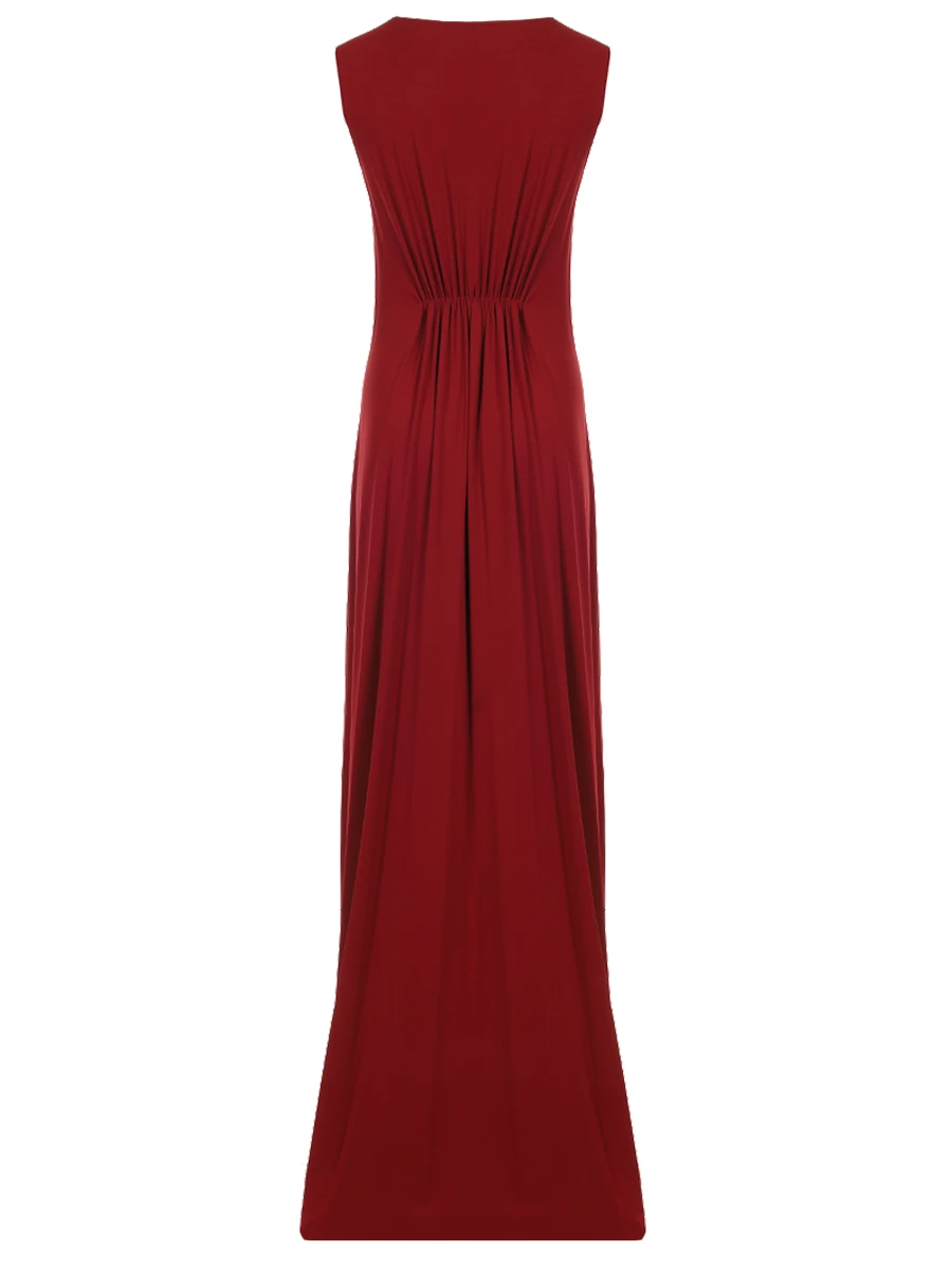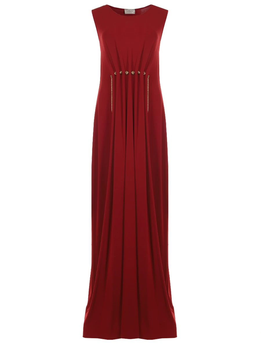 -Бордовое платье из струящейся вискозы от LANVIN. -Модель приталенного силуэта без рукавов с круглым вырезом горловины, декором и акцентной сборкой на талии и спинке. -Платье подчеркнет достоинства фигуры и превратит каждый выход в незабываемое событие. -Дополните образ обувью на высоком каблуке, сдержанной бижутерией и миниатюрной сумкой на плечо.