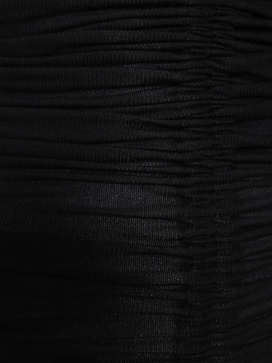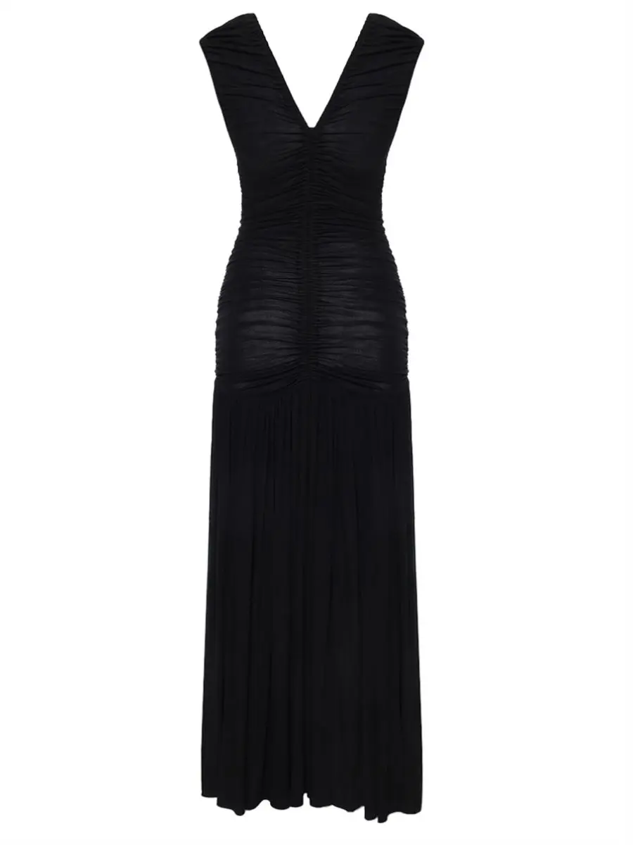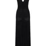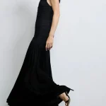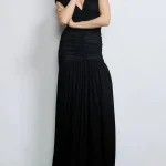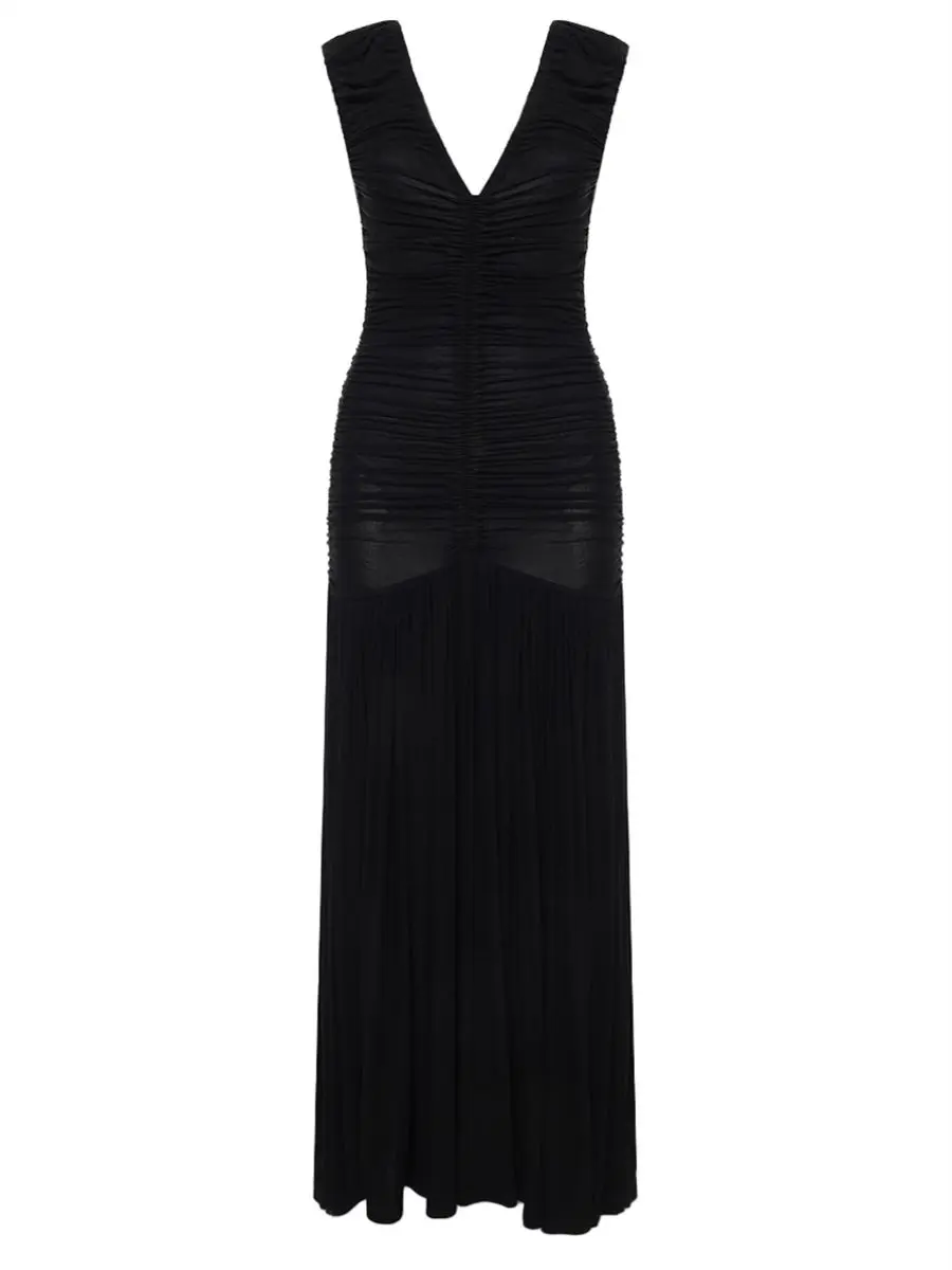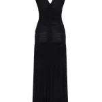 -Черное платье-макси из итальянского вискозного трикотажа от TOOMATCH. -Модель облегающего силуэта без рукавов с драпировкой лифа и расклешенной юбкой. -Лаконичное платье, в котором нет ничего лишнего, уместно дополнит коктейльные или вечерние мероприятия. Размерная сетка: XS-S: ширина плеча-11, ширина по талии-62, ширина по бедрам-96, длина по спинке от плеч.шва-143.