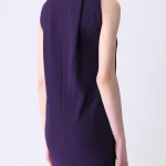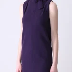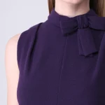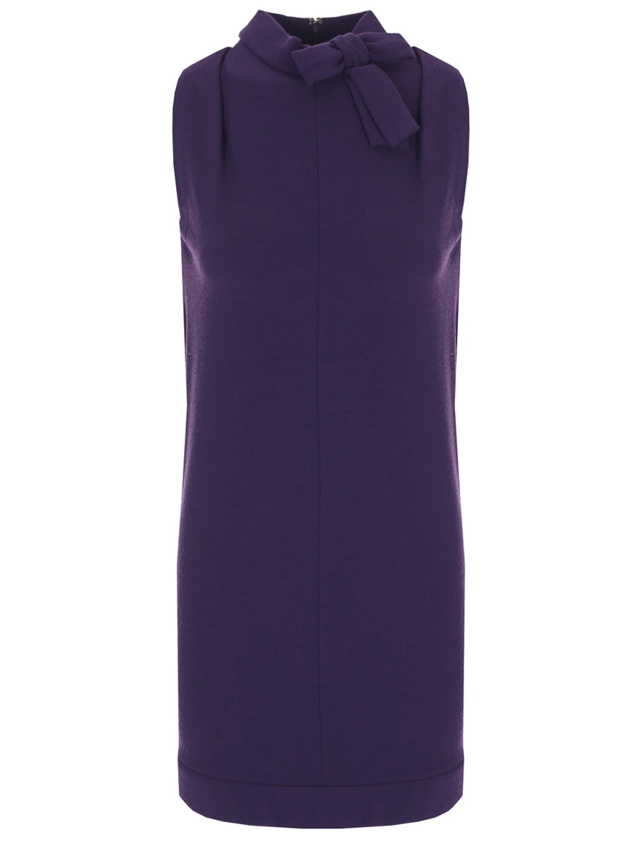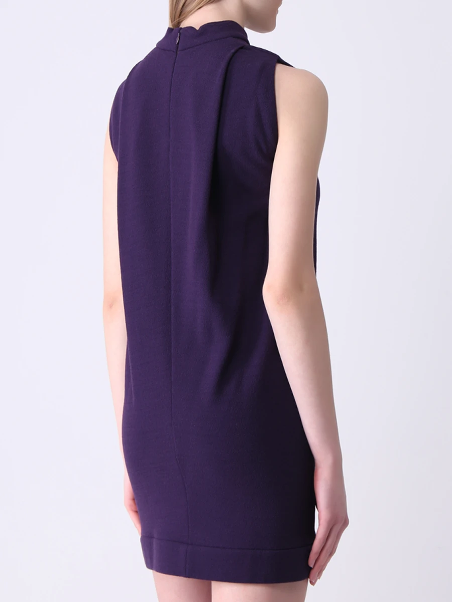 -Фиолетовое коктейльное мини-платье из тонкой смесовой шерсти от DSQUARED2. -Полуприлегающий силуэт, низкий воротничок-стойка с декоративным бантом, застежка-молния на спинке.