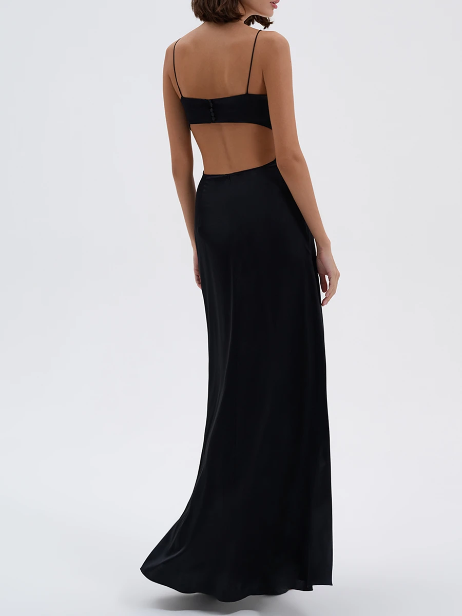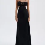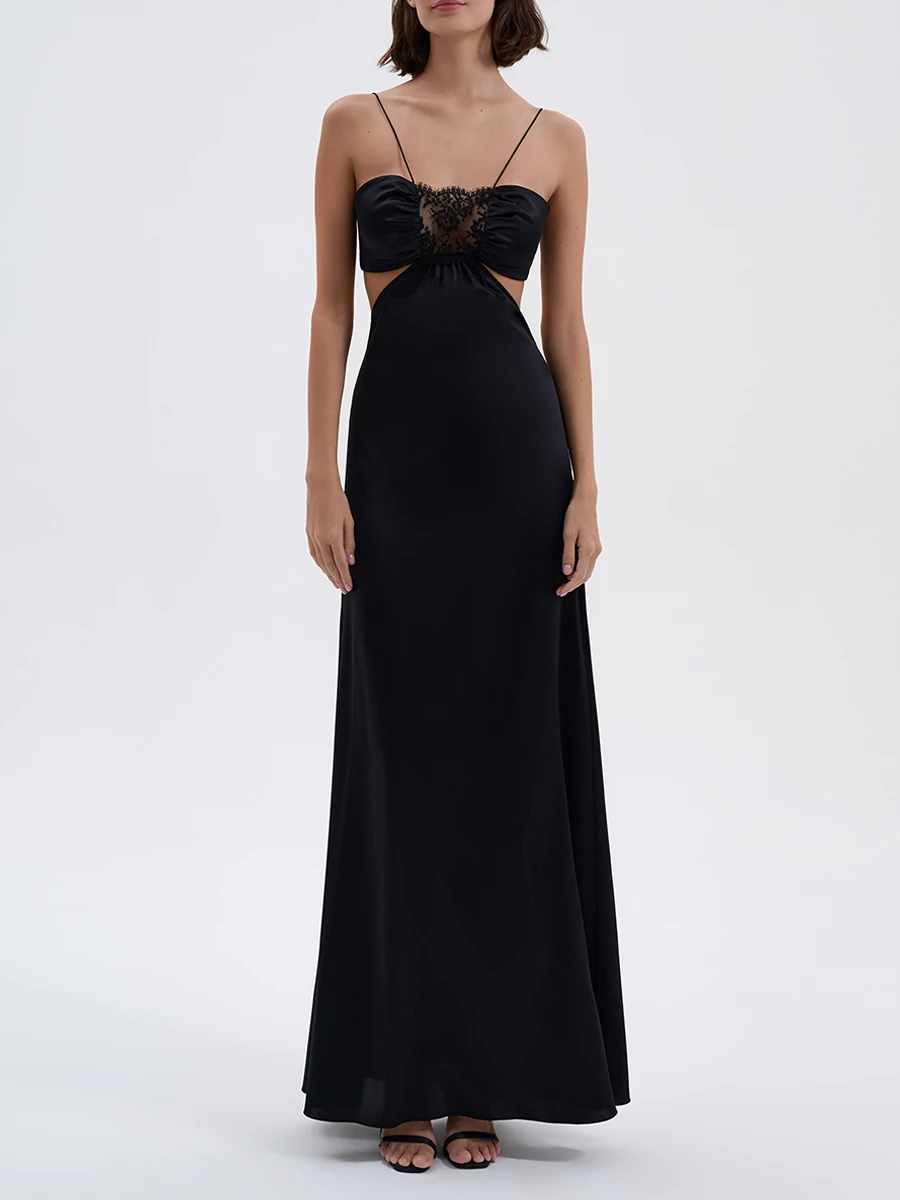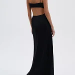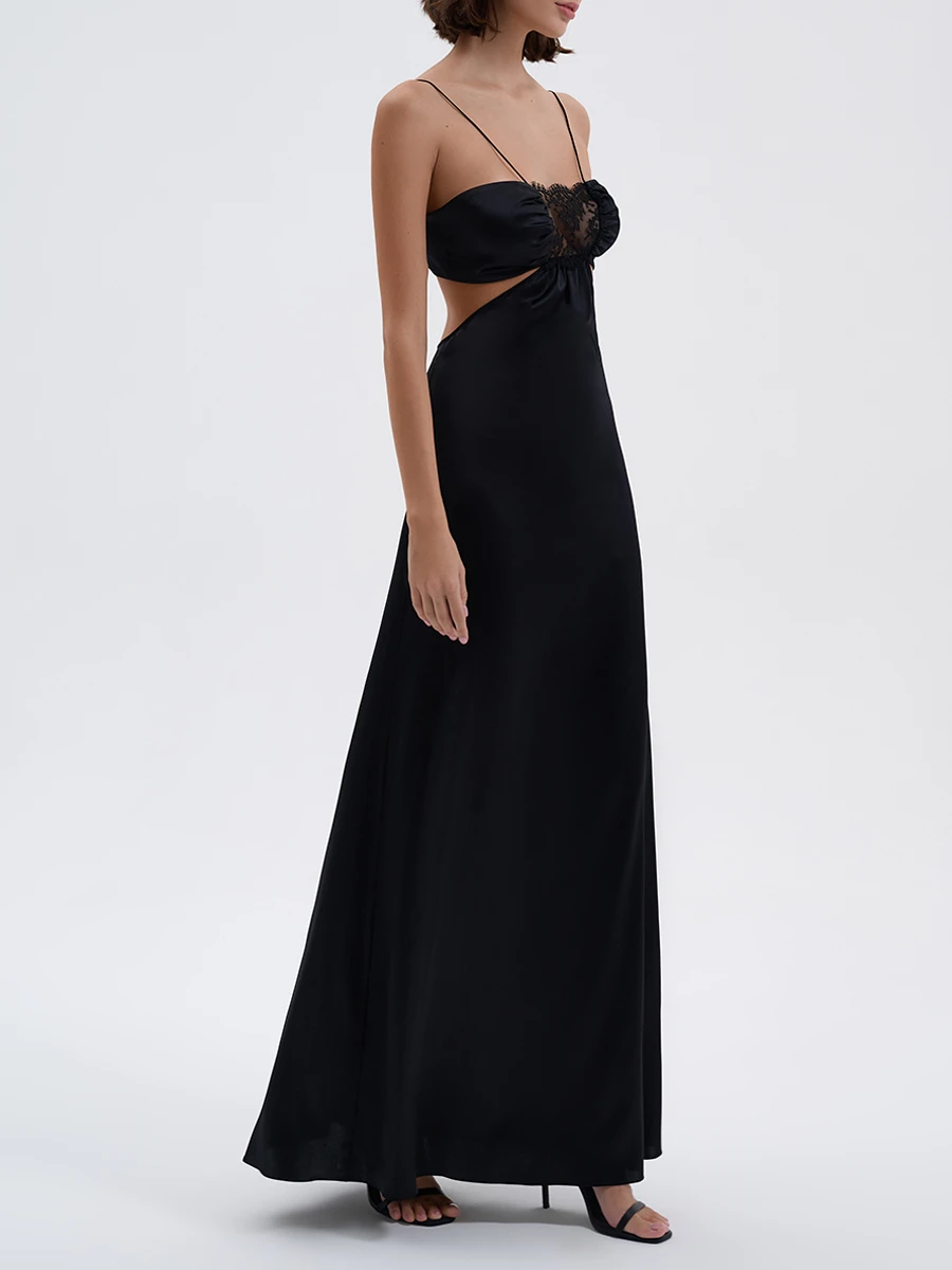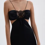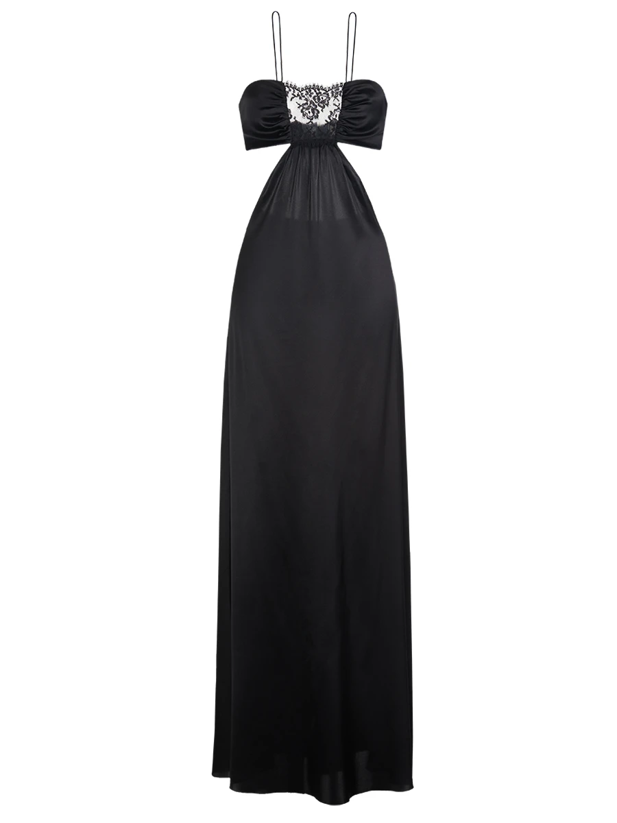-Платье-комбинация с вышивкой от TAMI GEE. -Для пошива изделия со скульптурной драпировкой используется тонкий угольно-чёрный шёлк, который едва ощущается на теле. -Акцентом под лучами света вспыхивает прозрачное кружево в зоне лифа. Также соблазнительности образу добавляют разрезы на талии.