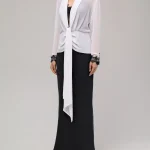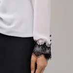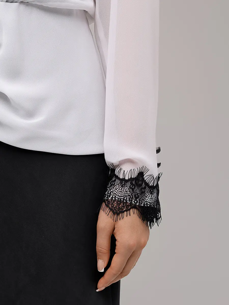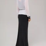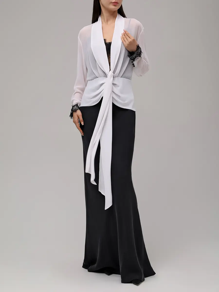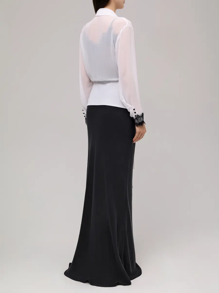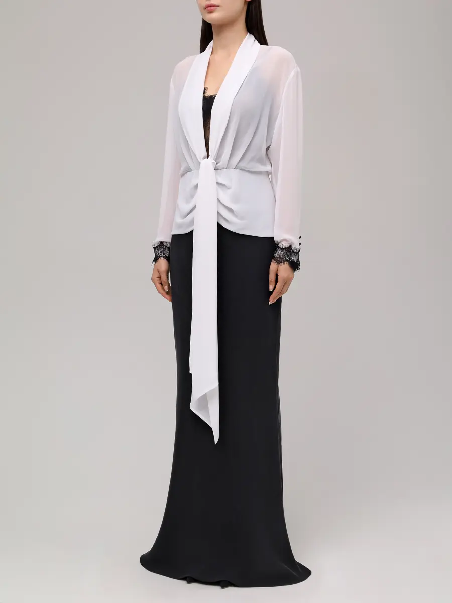-Платье-макси купажированного состава от LAROOM. -Модель стилизована как сочетание юбки и блузы с контрастной кружевной отделкой рукавов. -Изящный шлейф добавит образу женственную ноту и визуально вытянет силуэт.