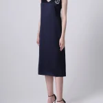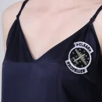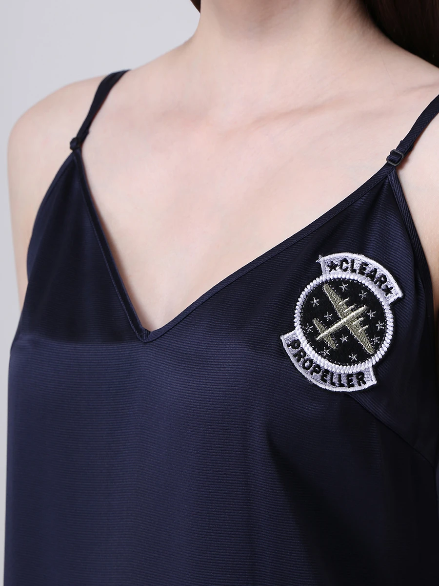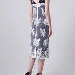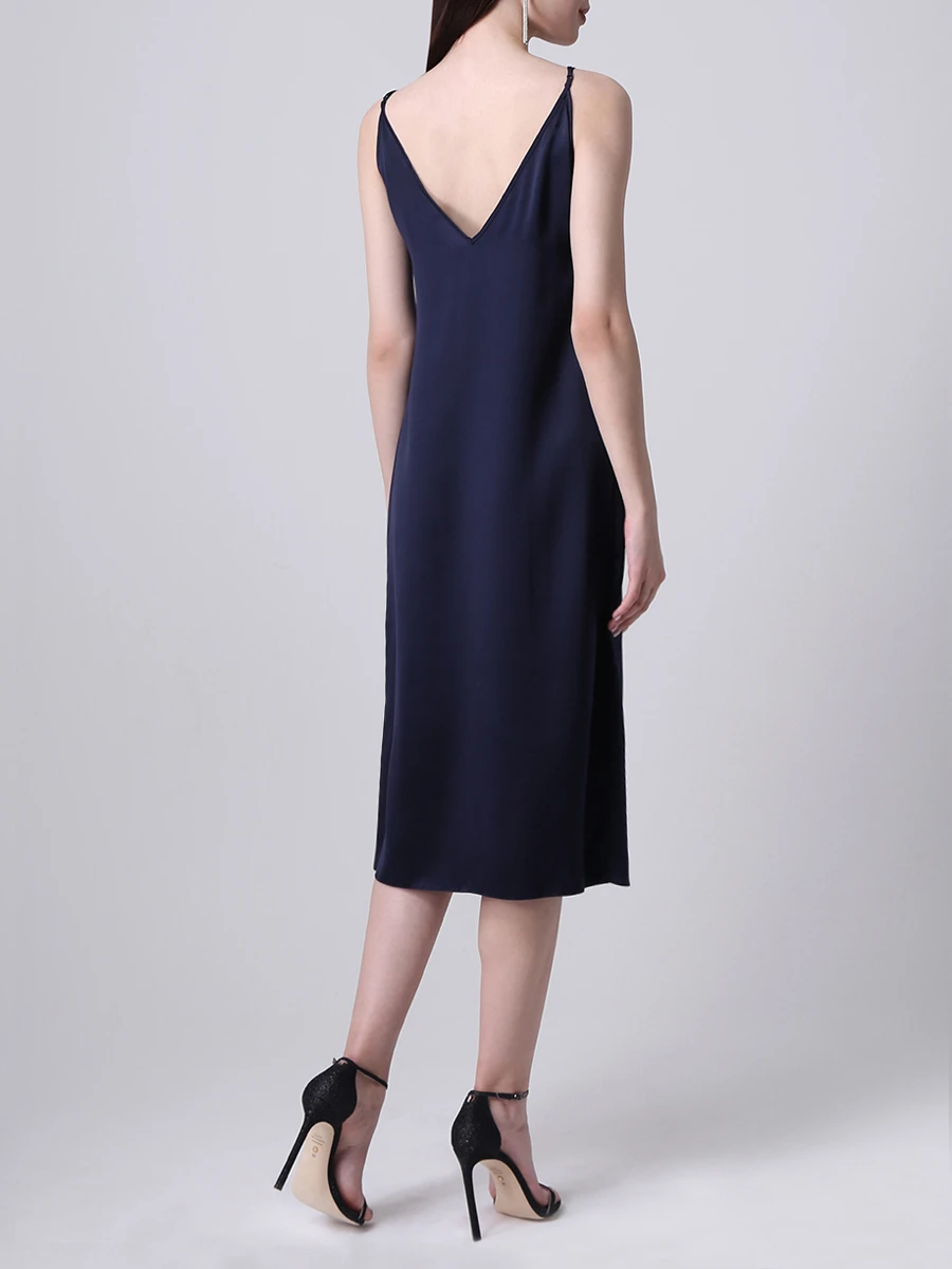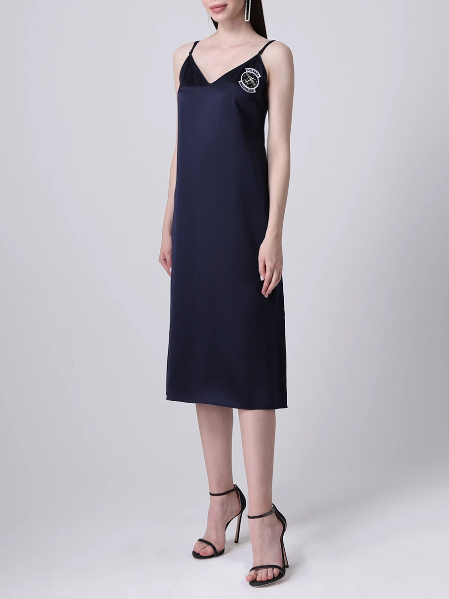 -Оригинальное платье в бельевом стиле от GRAVITEIGHT. -Базовое нижнее платье из шелка синего цвета с логотипом, верхнее платье из изящного кружевного полотна белого цвета, узкие регулируемые бретели, длина миди.