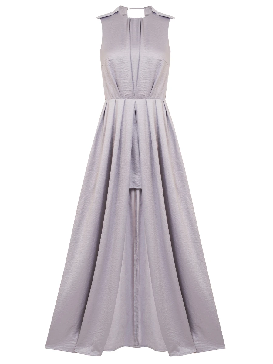 -Платье-макси из смесовой вискозы в лавандовом цвете от Y.SO. -Модель прилегающего силуэта с расклешенной юбкой с круглым вырезом горловины, застежкой на потайную молнию и на пуговицу. -Высокий вырез по передней части изделия эффектно открывает ногу, а нижняя юбка позволит чувствовать себя уверенно в любой ситуации. Глубокий вырез по спинке придает облику страстный и соблазнительный акцент. Обхват груди (см) XS 86-90 S 92-96 М 98-102 Обхват талии (см) XS 60-64 S 66-70 М 72-76 Обхват бедер (см) XS до 92 S до 98 М до 104