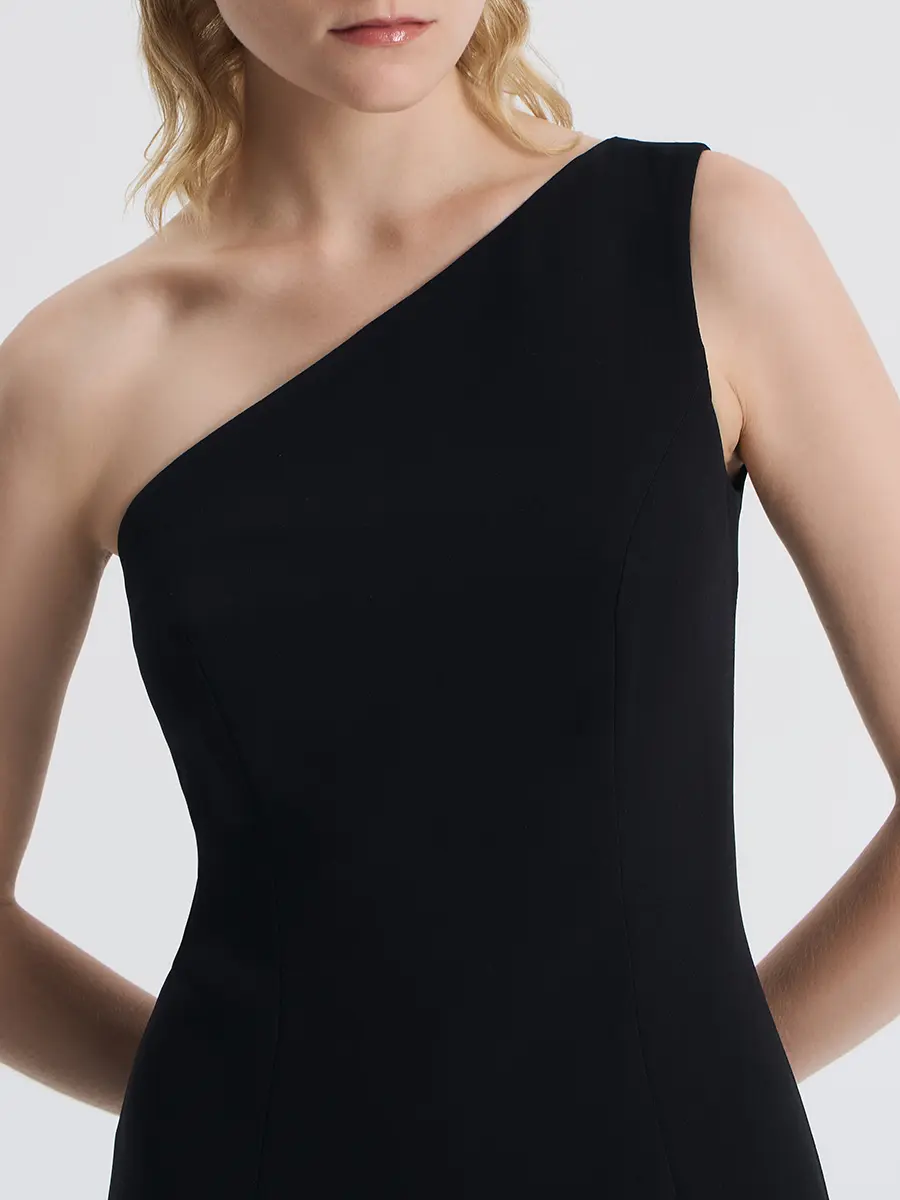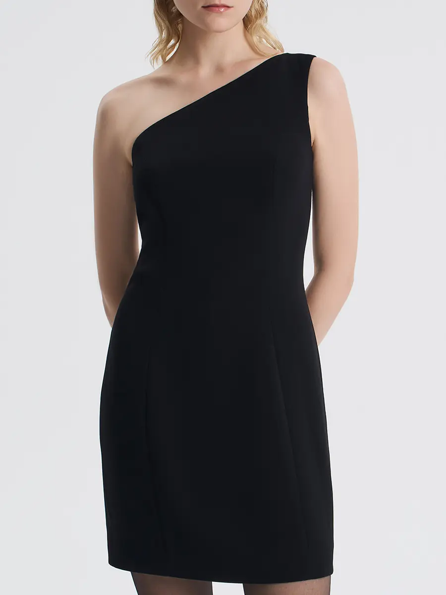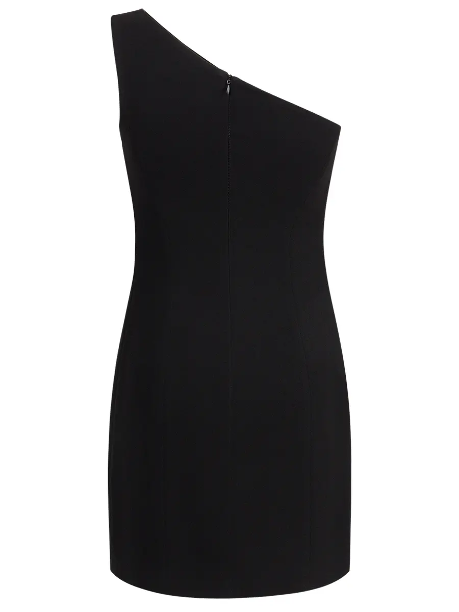 -Платье из эластичной ткани в черном цвете от FASHION REBELS. -Мини-платье на одно плечо — дерзкое воплощение шика. -Модель с асимметричным лифом из эластичного крепа и рельефными швами мягко облегает фигуру, создавая выразительный силуэт. -Потайная молния на спинке и подкладка обеспечивают безупречную посадку. -Универсальный вариант для коктейльных вечеринок и особенных поводов. -Изделие выпущено ограниченным тиражом.