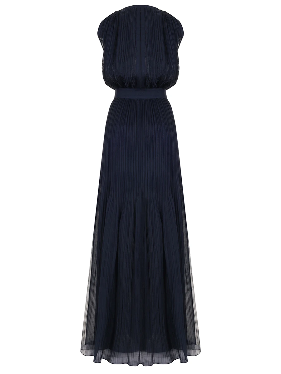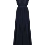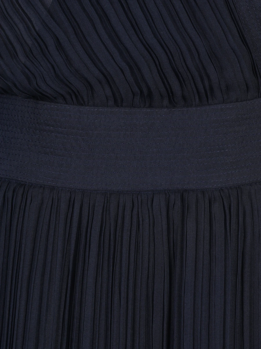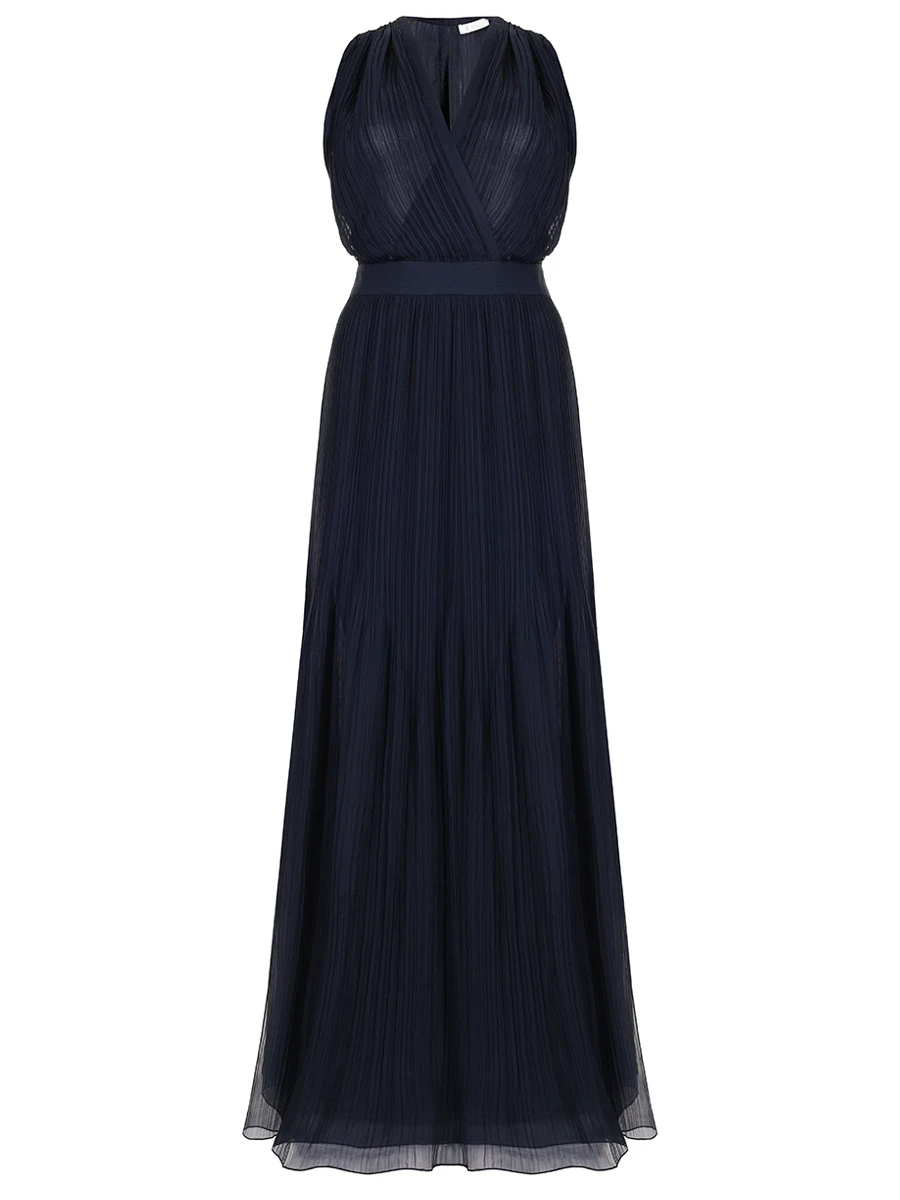 -Платье в темно-синем цвете от CHLOE. -Модель полуприлегающего кроя без рукавов с V-образным вырезом горловины и застежкой на молнии. -Платье дополнит яркие вечерние образы с удобными туфлями.