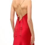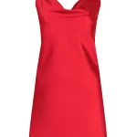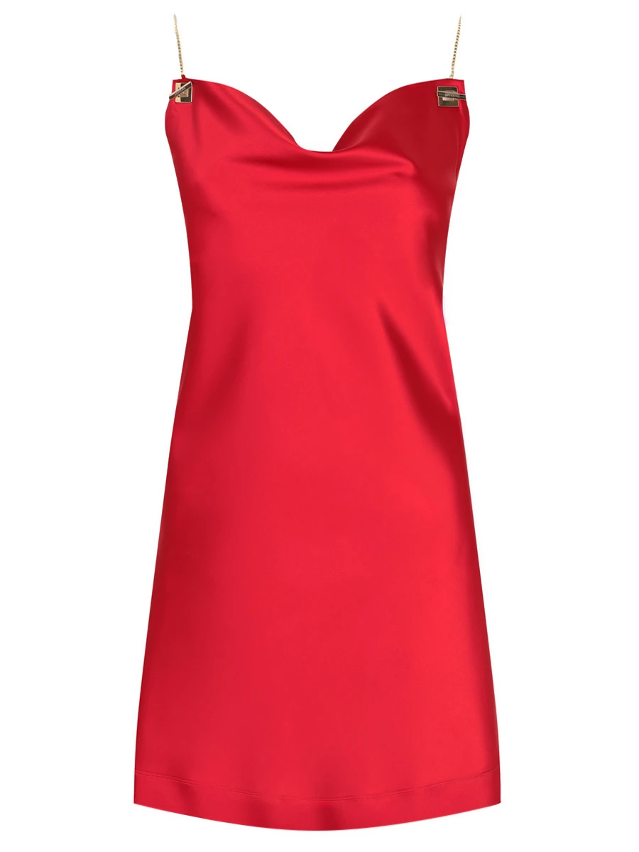 -Алое мини-платье из атласного искусственного шелка от DANAME. -Модель с акцентом кроя на талии, полуприлегающей юбкой, узкими бретелями-цепочками в золоте на плечах, которые перекрещиваются на спине, драпировкой-качели в зоне декольте и сзади. -Золотистая металлофурнитура органично контрастирует с красным цветом, создавая яркий вечерний образ.