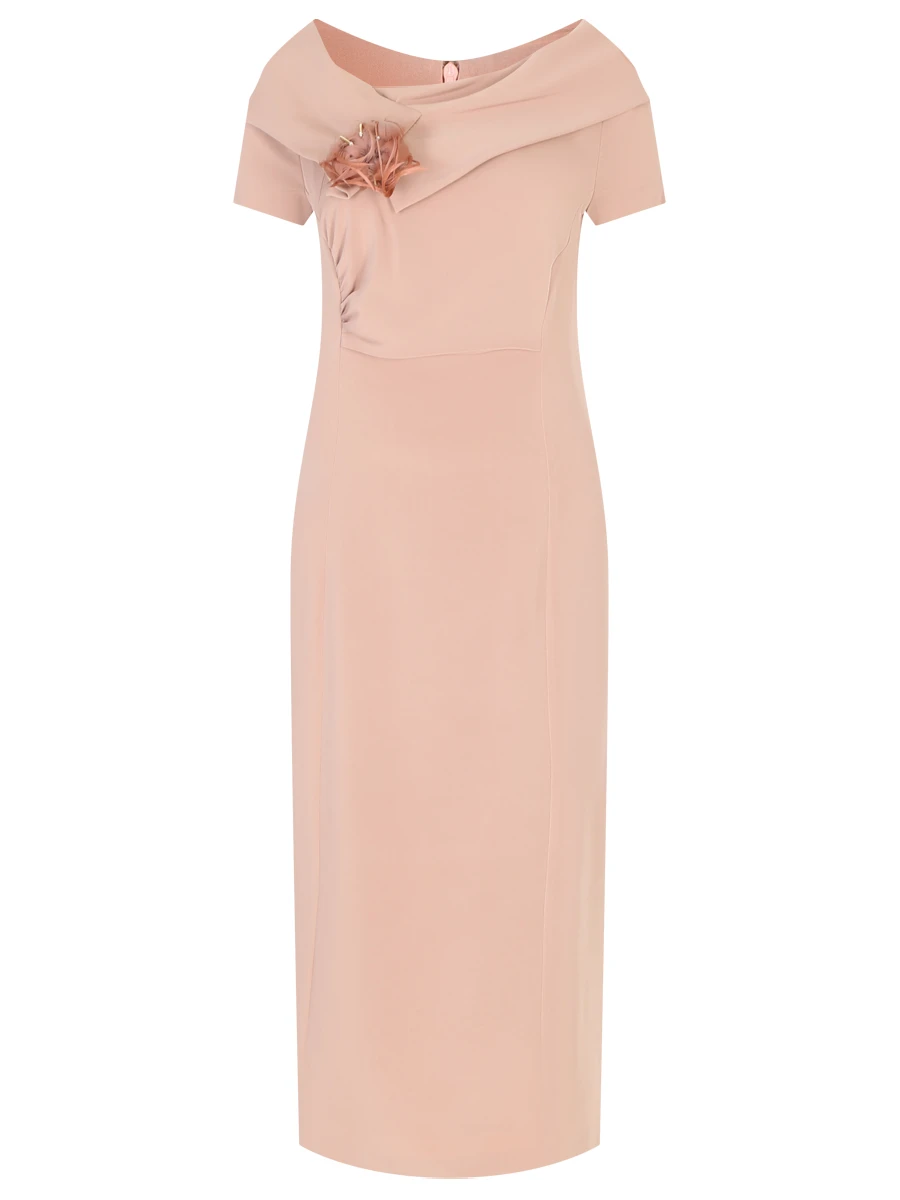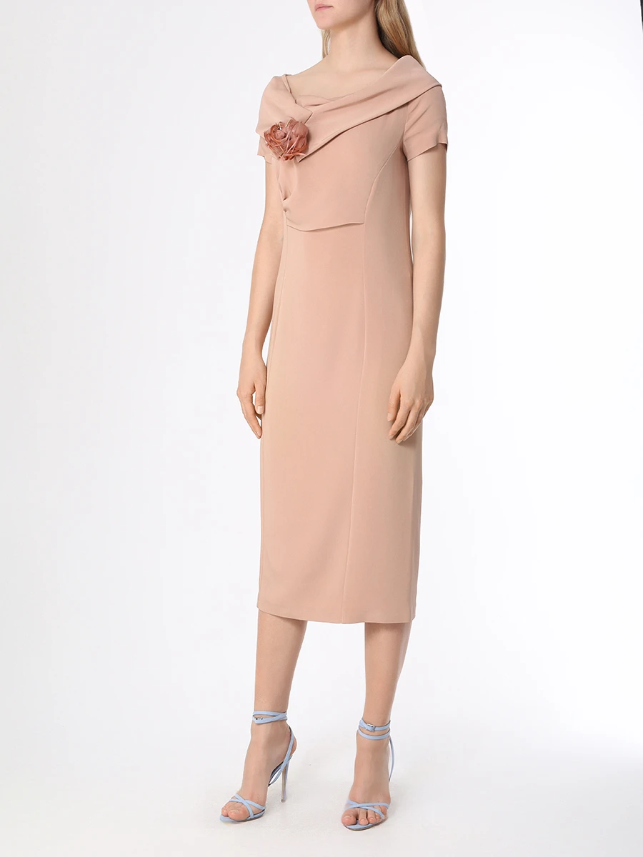 -Платье в бежевом цвете от DSQUARED2. -Круглый вырез горловины, короткие рукава, застежка-молния.