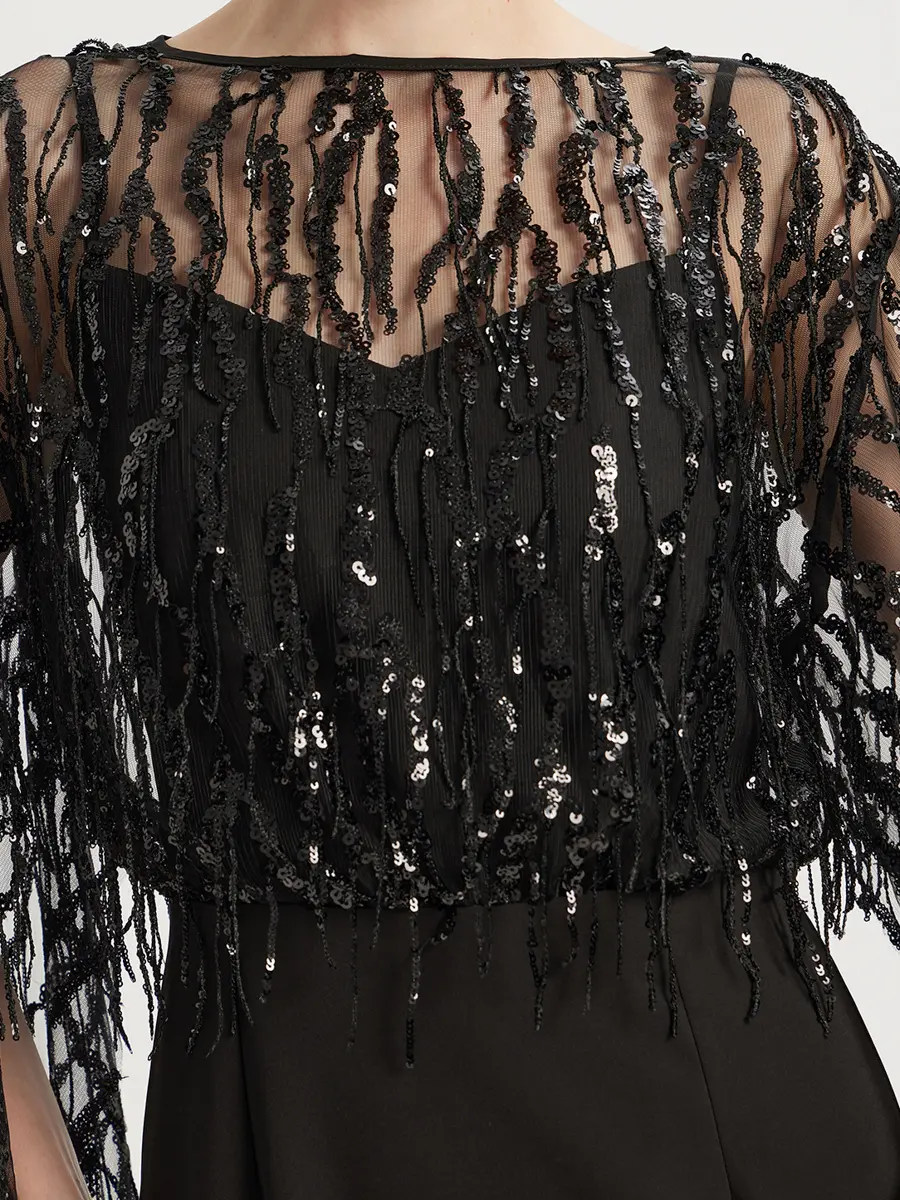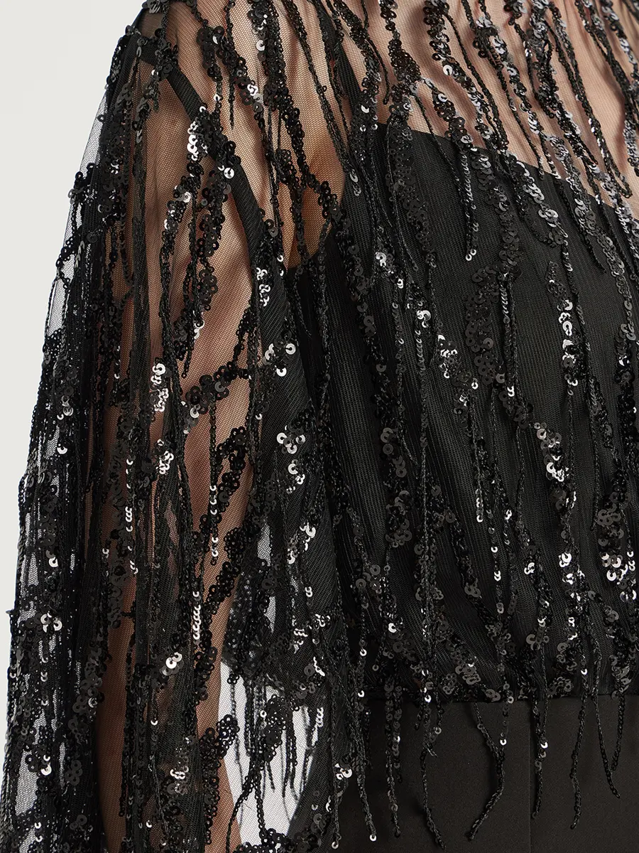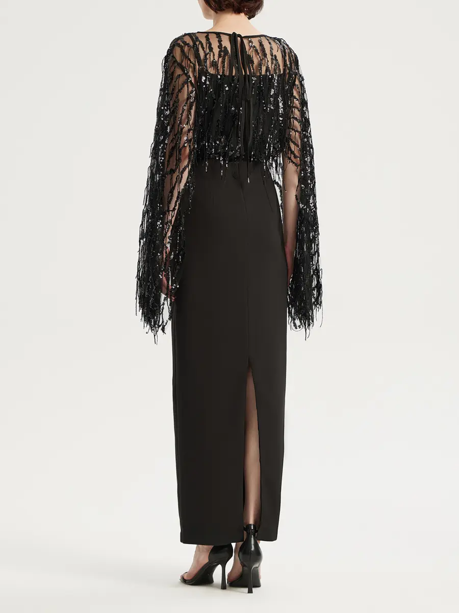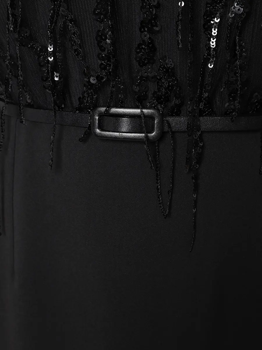 -Черное платье-макси от EMILIA DELL’ORO. -Модель на узких бретелях и роскошным верхом с длинными широкими рукавами, расшитым пайетками, выглядит очень элегантно и привлекает внимание. -Подчеркнуть талию и структурировать силуэт поможет пояс в тон. -Силуэт в пол создает незабываемый образ, идеально подходящий для самого торжественного события. Размер XXS соответствует 40 российскому размеру, ОГ 80, ОТ 62, ОБ 86. Размер XS соответствует 42 российскому размеру, ОГ 84, ОТ 66, ОБ 90. Размер S соответствует 44 российскому размеру, ОГ 88, ОТ 70, ОБ 94. Размер M соответствует 46 российскому размеру, ОГ 92, ОТ 74, ОБ 98. Размер L соответствует 48 российскому размеру, ОГ 96, ОТ 78, ОБ 102. Размер XL соответствует 50 российскому размеру, ОГ 100, ОТ 82, ОБ 106. Размер XXL соответствует 52 российскому размеру, ОГ 104, ОТ 86, ОБ 110. Размер XXXL соответствует 54 российскому размеру, ОГ 108, ОТ 90, ОБ 114.