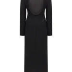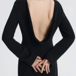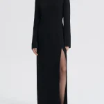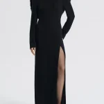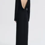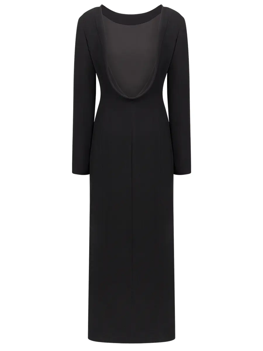 -Платье в пол с вырезом на спине из эластичной ткани в черном цвете от FASHION REBELS. -Платье в духе голливудских кинодив 30-х годов: роскошный эластичный креп, длина макси, глубокий вырез на спине, подчеркнутый отложной деталью по краю, и высокий боковой разрез спереди. -Платье прилегающего силуэта повторяет линии фигуры благодаря формообразующим рельефам. -Изделие выпущено ограниченным тиражом.