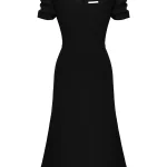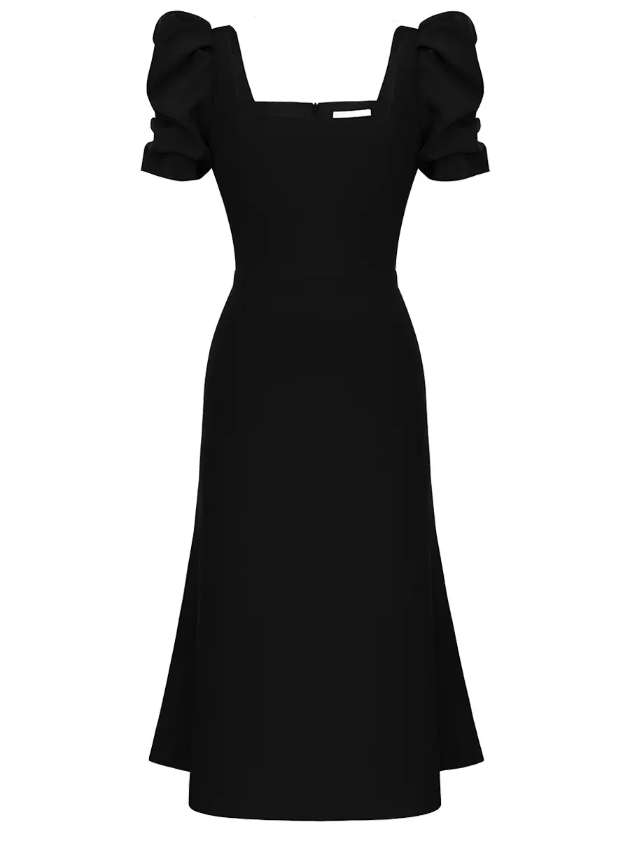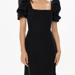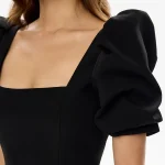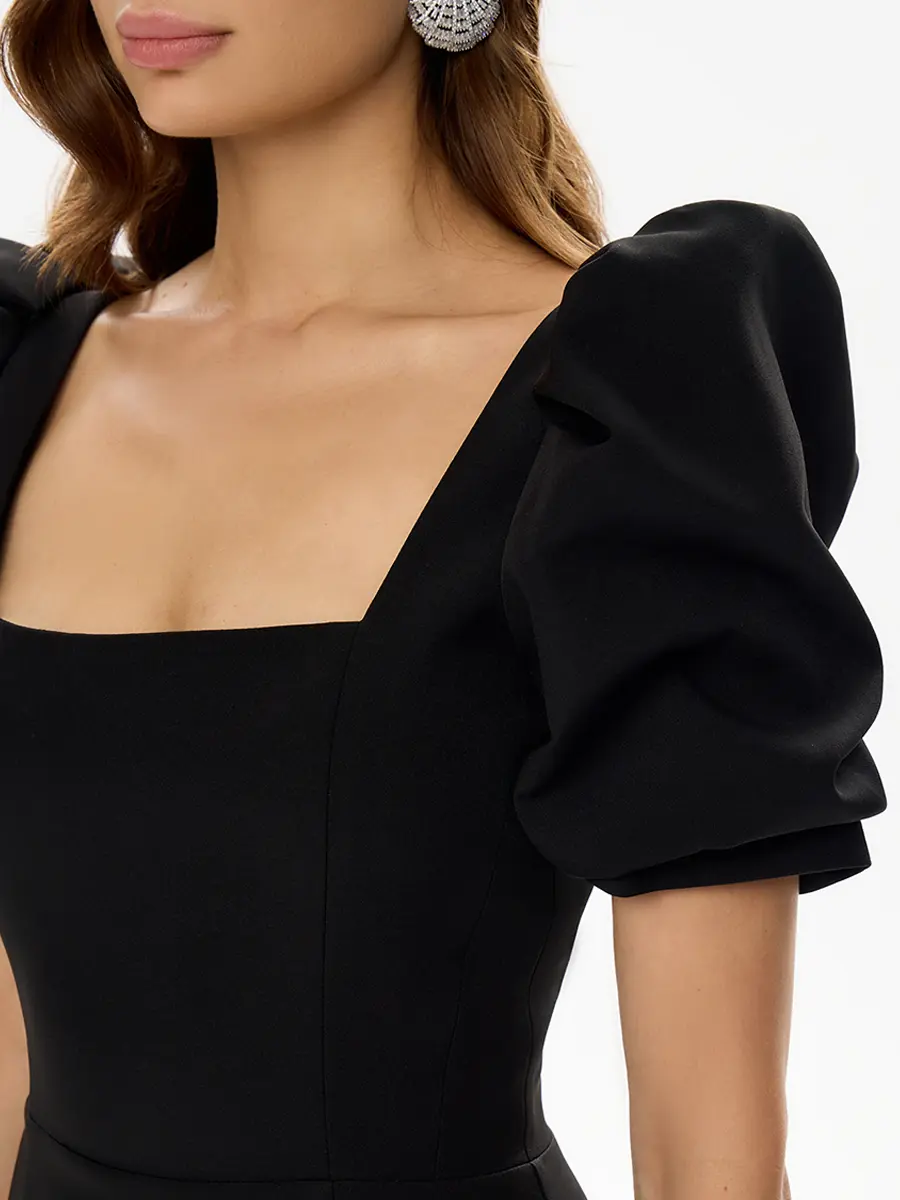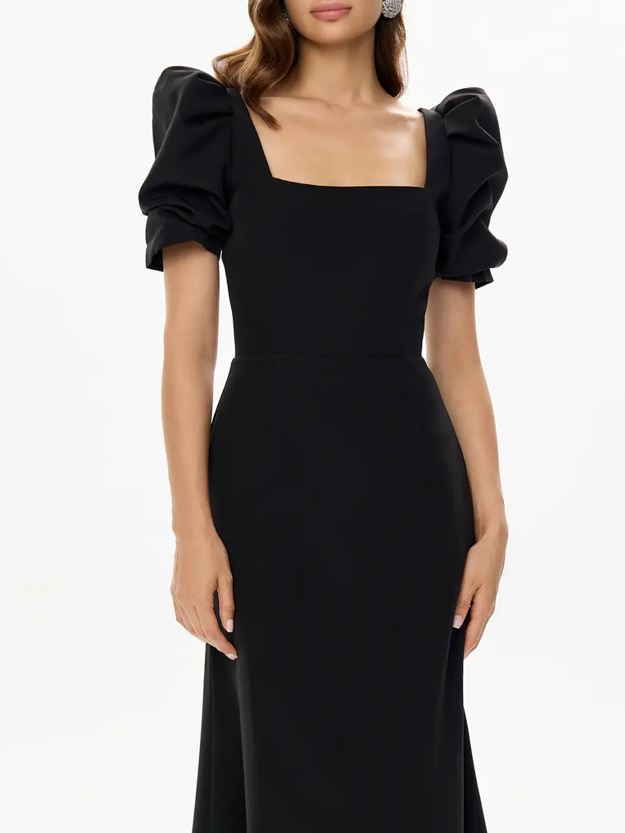 -Черное платье купажированного состава от POST MERIDIEM. -Модель приталенного силуэта с пышными короткими рукавами и юбкой-годе, застежкой на потайную молнию. -Квадратный вырез подчеркивает декольте и визуально удлиняет шею. -Модель не сковывает движения и комфортно садится по фигуре. -Легкое и воздушное платье можно носить как с минималистичными лодочками, так и с босоножками. Параметры изделия: Длина юбки от талии: 86 см. Размер XS: ОГ: 82 см; ОТ:62 см; ОБ: 89 см. Длина рукава: 30 см Размер S: ОГ: 86 см; ОТ: 66 см; ОБ: 92 см. Длина рукава: 30 см Размер M: ОГ: 90 см; ОТ: 70 см; ОБ: 98 см. Длина рукава: 30 см Размер L: ОГ: 94 см; ОТ: 74 см; ОБ: 102 см. Длина рукава: 30 см. Размер XL: ОГ: 98 см; ОТ: 80 см; ОБ: 108 см. Длина рукава: 35 см.