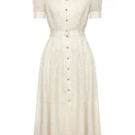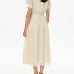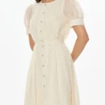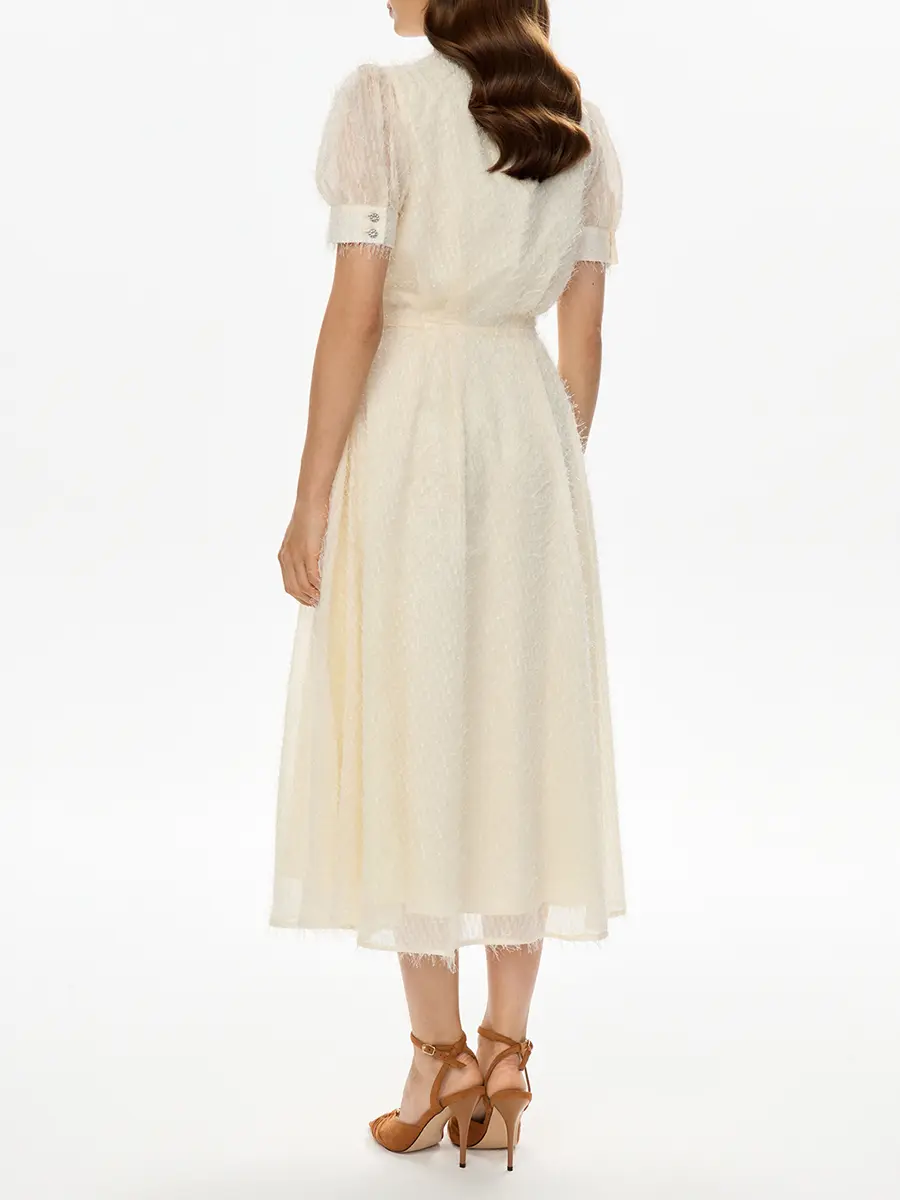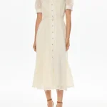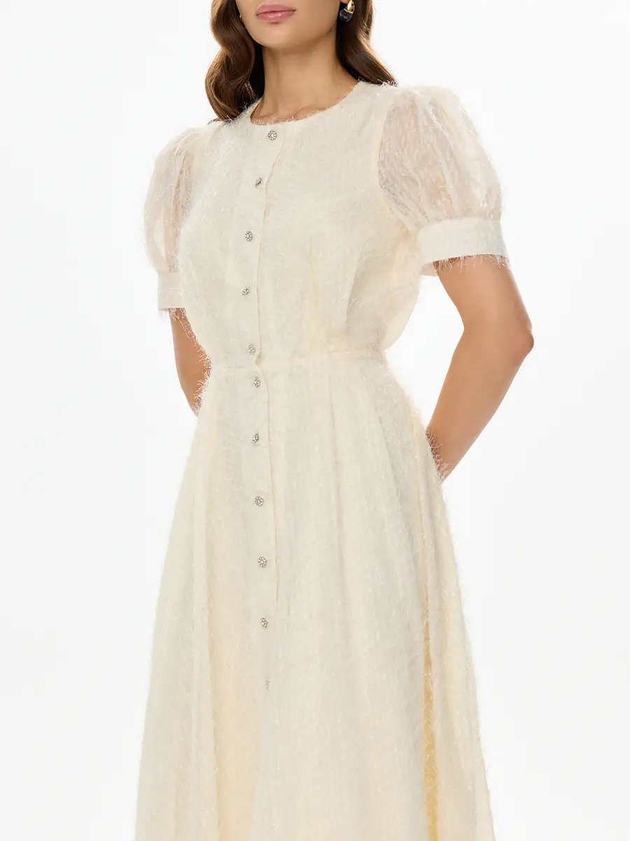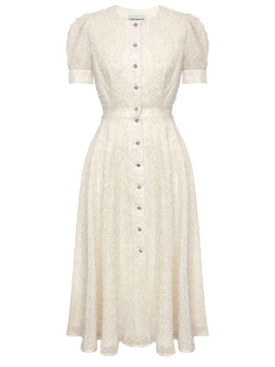 -Бежевое платье от POST MERIDIEM. -Модель полуприлегающего кроя с акцентом на талии и расклешенной юбкой, рукавами-фонариками, круглым вырезом горловины, застежкой на пуговицы. -Данное изделие идеально сидит по фигуре, а пуговицы по всей длине платья позволяют регулировать глубину разреза. -Платье подойдёт как для вечерних и торжественных мероприятий, так и для повседневных образов. Параметры изделия: Длина юбки от талии: 85 см. Размер XS: ОГ: 82 см; ОТ: 60 см; ОБ: свободная юбка; длина рукава: 27 см. Размер S: ОГ: 86 см; ОТ: 64 см; ОБ: свободная юбка; длина рукава: 27 см. Размер M: ОГ: 90 см; ОТ: 69 см; ОБ: свободная юбка; длина рукава: 27 см. Размер L: ОГ: 94 см; ОТ: 72 см; ОБ: свободная юбка; длина рукава: 27 см. Размер XL: ОГ: 98 см; ОТ: 76 см; ОБ: свободная юбка; длина рукава: 28 см.