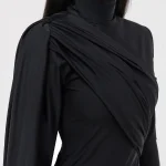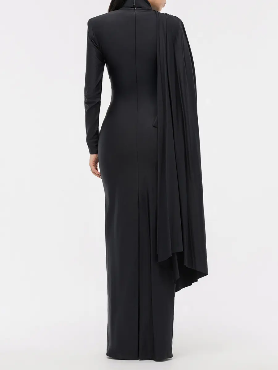 -Черное платье-макси купажированного состава от ELJACKET. -Платье «Тантра» создано в коллаборации ELJACKET и Юлии Крыловой, женским наставником, энергопрактиком, мастером тантры. -Оно красиво и естественно раскрывает грани внутренней женственности и сексуальности и гармонично проявляет их через образ. -Высокий воротник-стойка, длина макси, эффектная шлица, подчеркнутое плечо. -Материал — премиальный итальянский бифлекс — подобен второй коже. -Эластичный и нежный, он дарит тактильный комфорт. -Яркий акцент — стильная драпировка, красиво переходящая в «крыло». -Черный цвет — символ загадочности и глубины. -Абсолютная женственность и сексуальность. -Максимальное проявление женской сути и манкости. -Тотальная гармония и уверенность. -Лаконичность и одновременная эффектность.