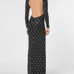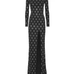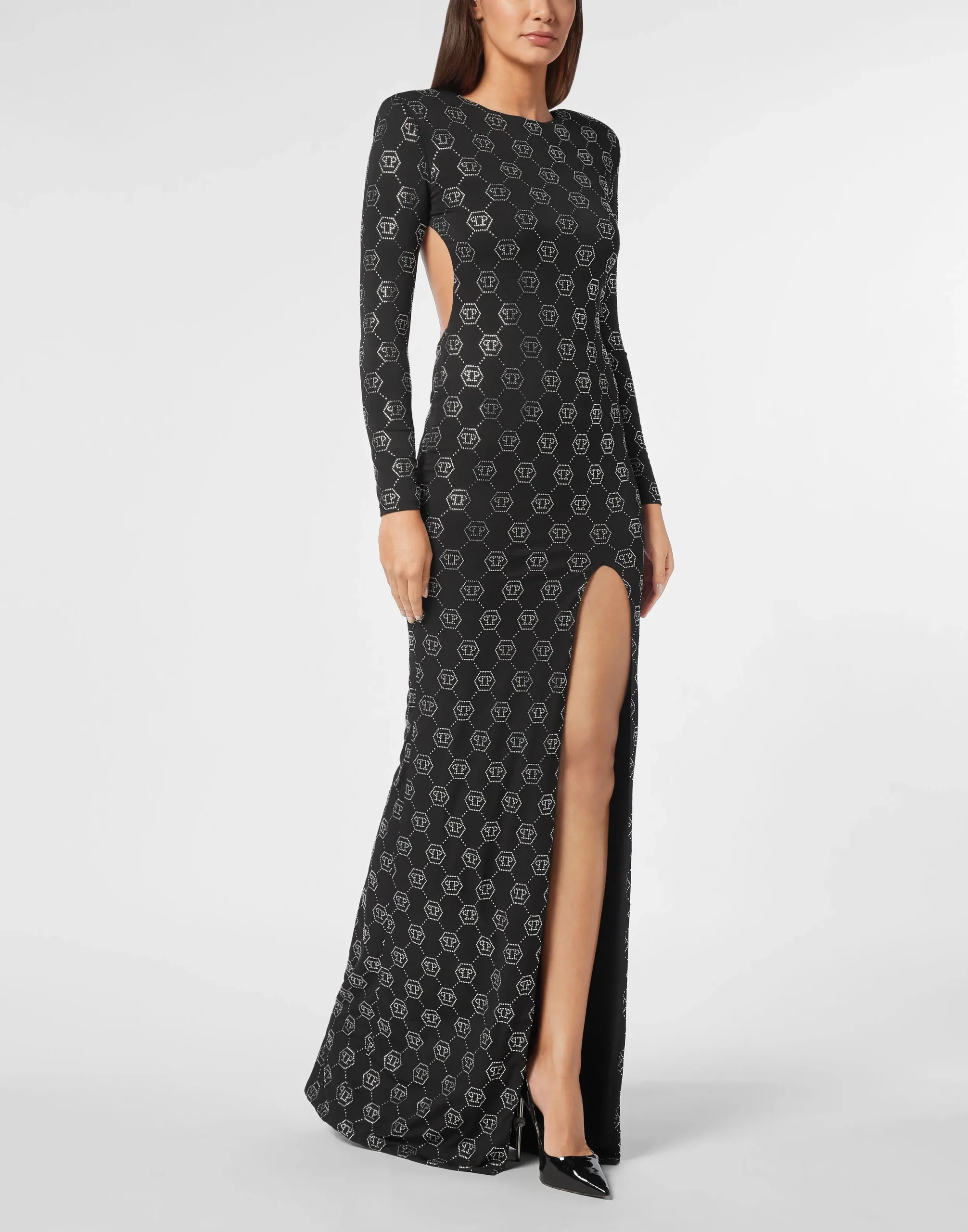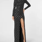 Сделайте акцент на фигуре с помощью этого оригинального вечернего платья из джерси с длинным рукавом.