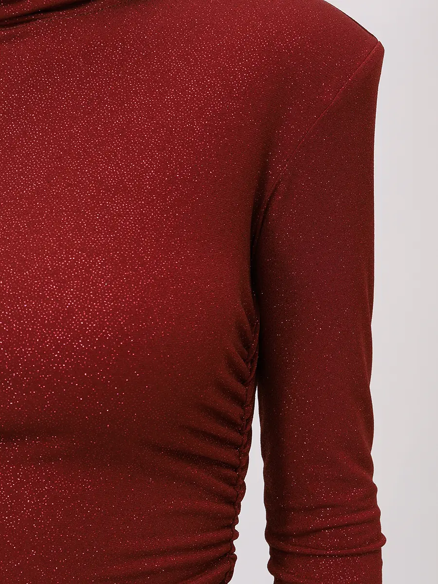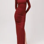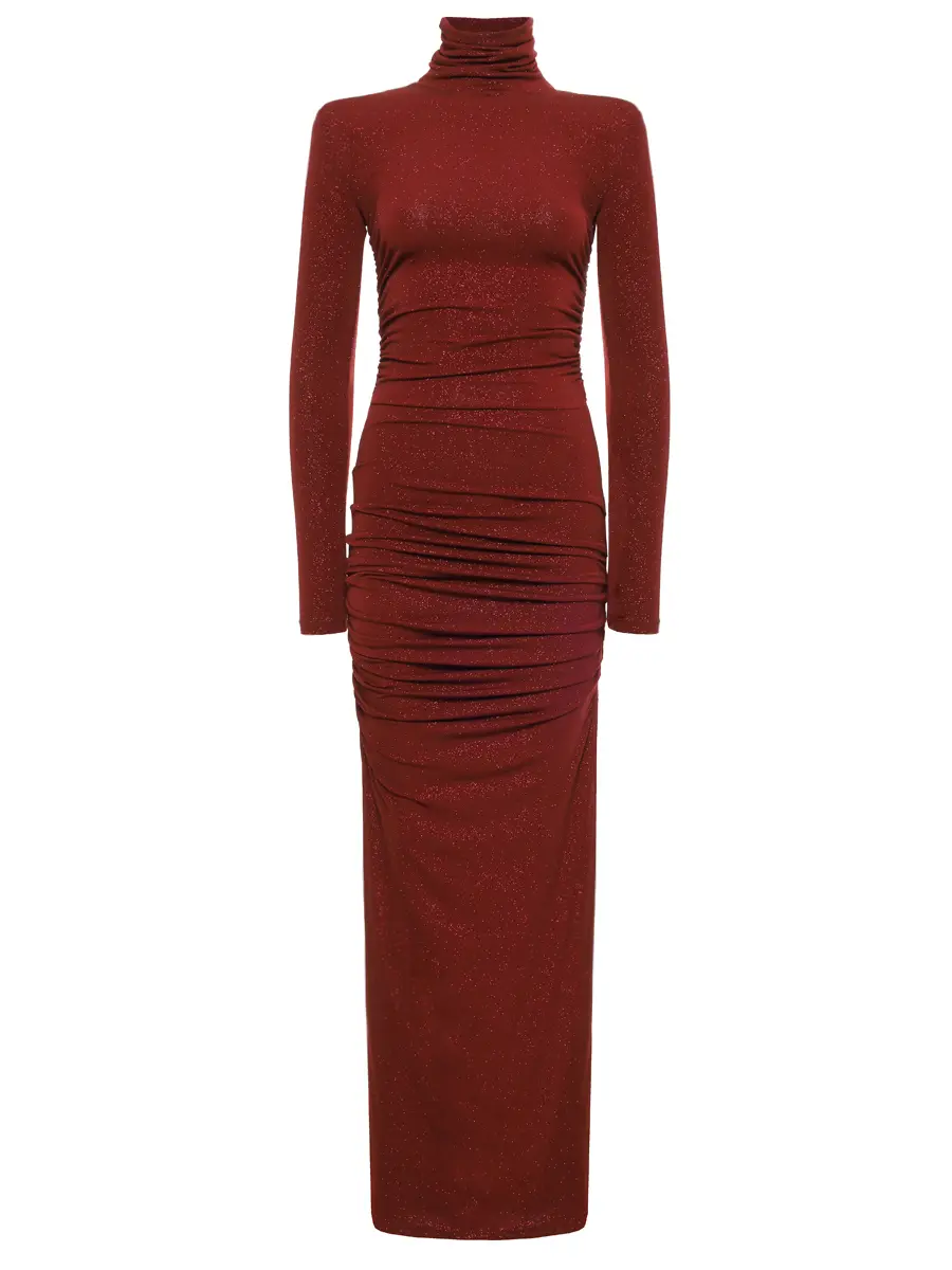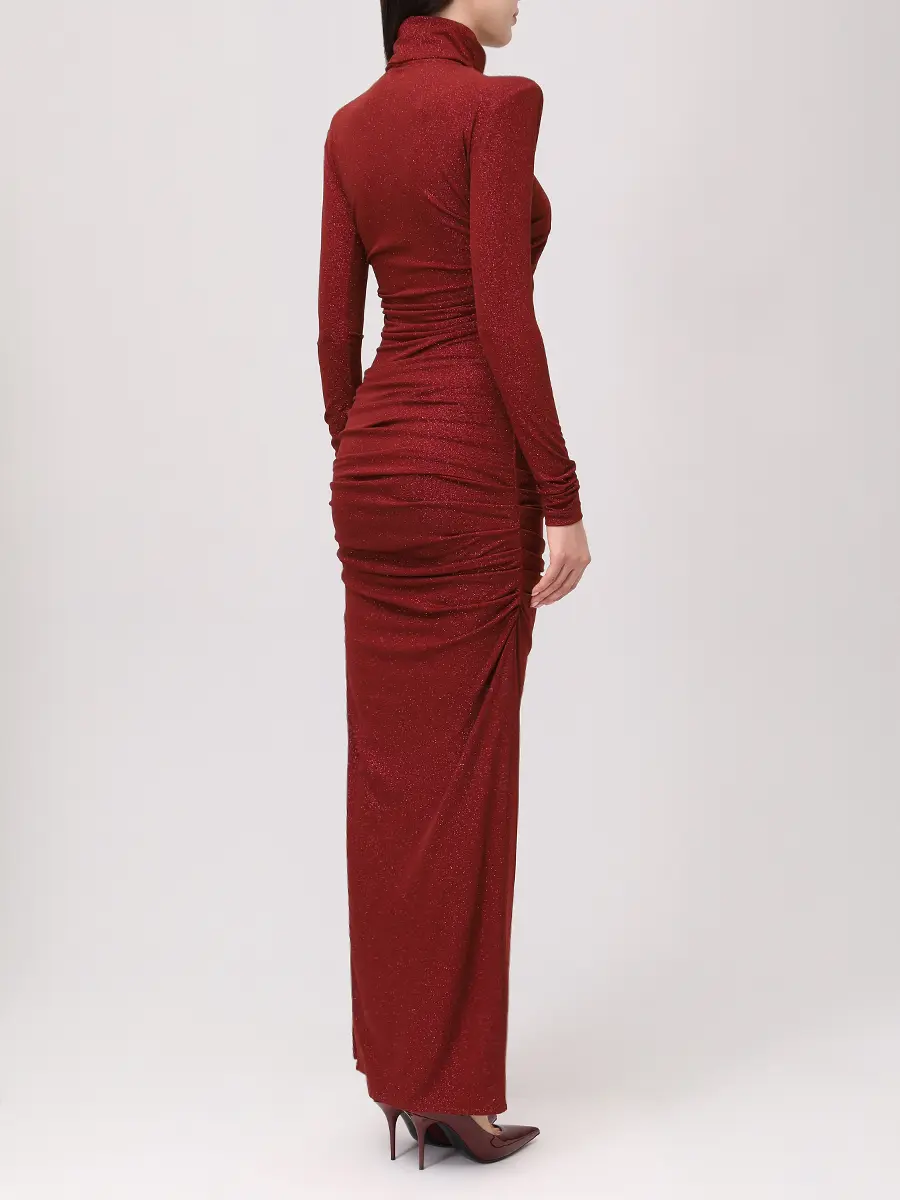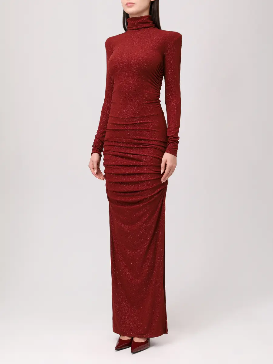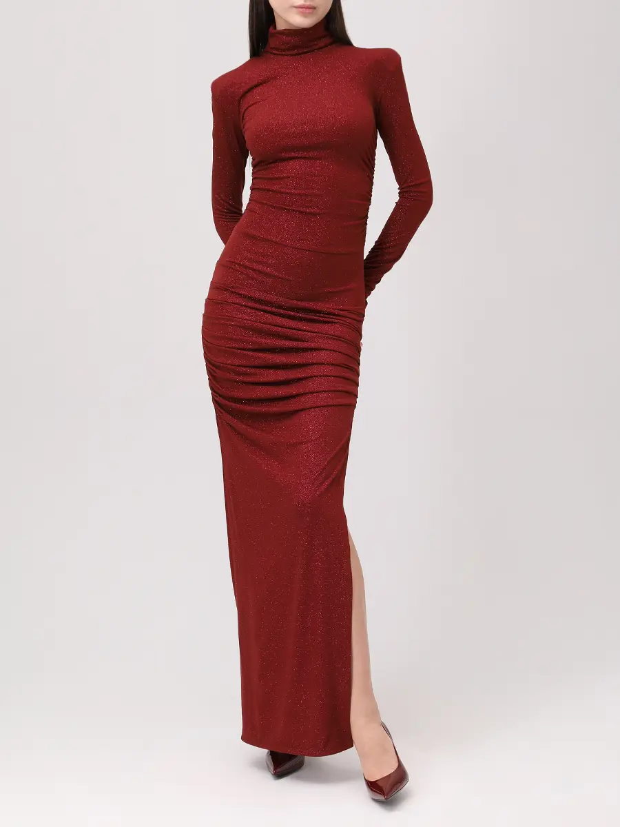 -Бордовое платье-макси из коллекции COSMOS с мелким блестящим напылением от SO BEAUTIFUL & WILD. -Модель облегающего кроя с длинными рукавами, воротником-стойкой, легкой драпировкой и высоким боковым разрезом. -Лаконичное платье, в котором нет ничего лишнего уместно дополнит коктейльные или вечерние мероприятия. Обхват груди (см) XS 84-92 S 90-98 M 96-104 L 102-110 Обхват талии (см) XS 64-74 S 72-82 M 80-90 L 88-98 Обхват бедра (см) XS 90-98 S 98-106 M 106-114 L 114-122
