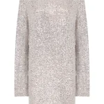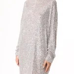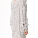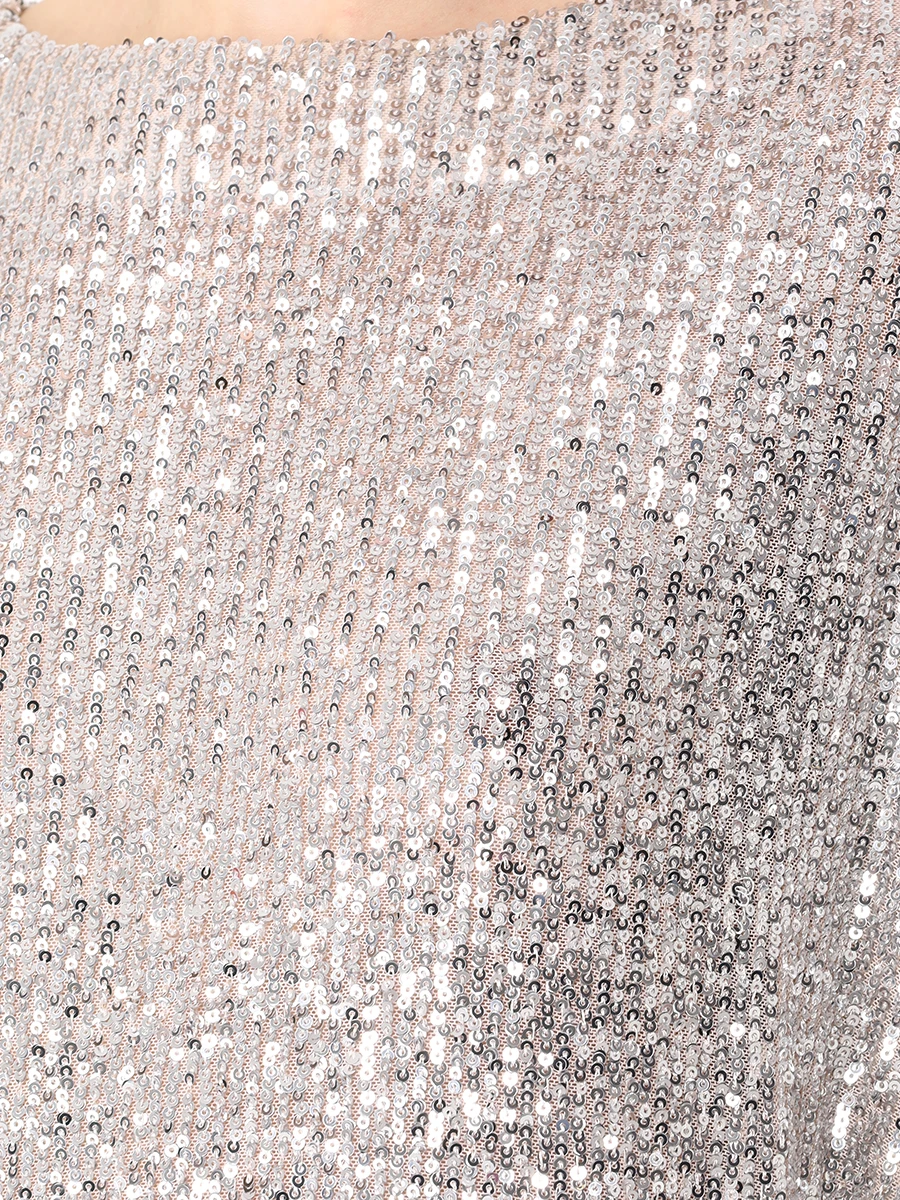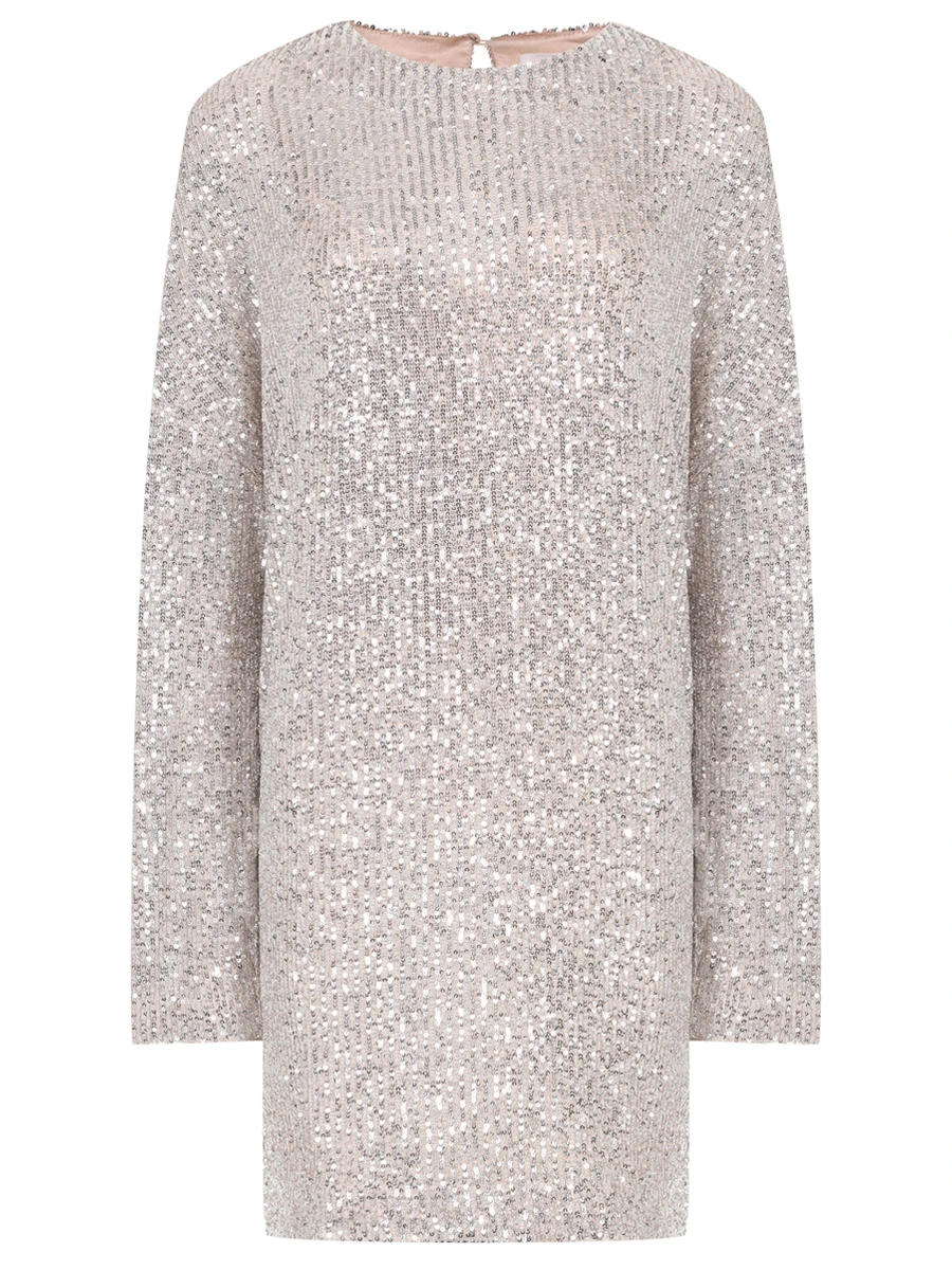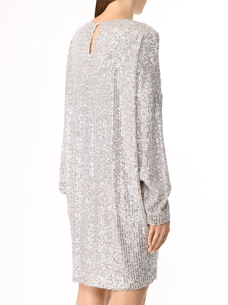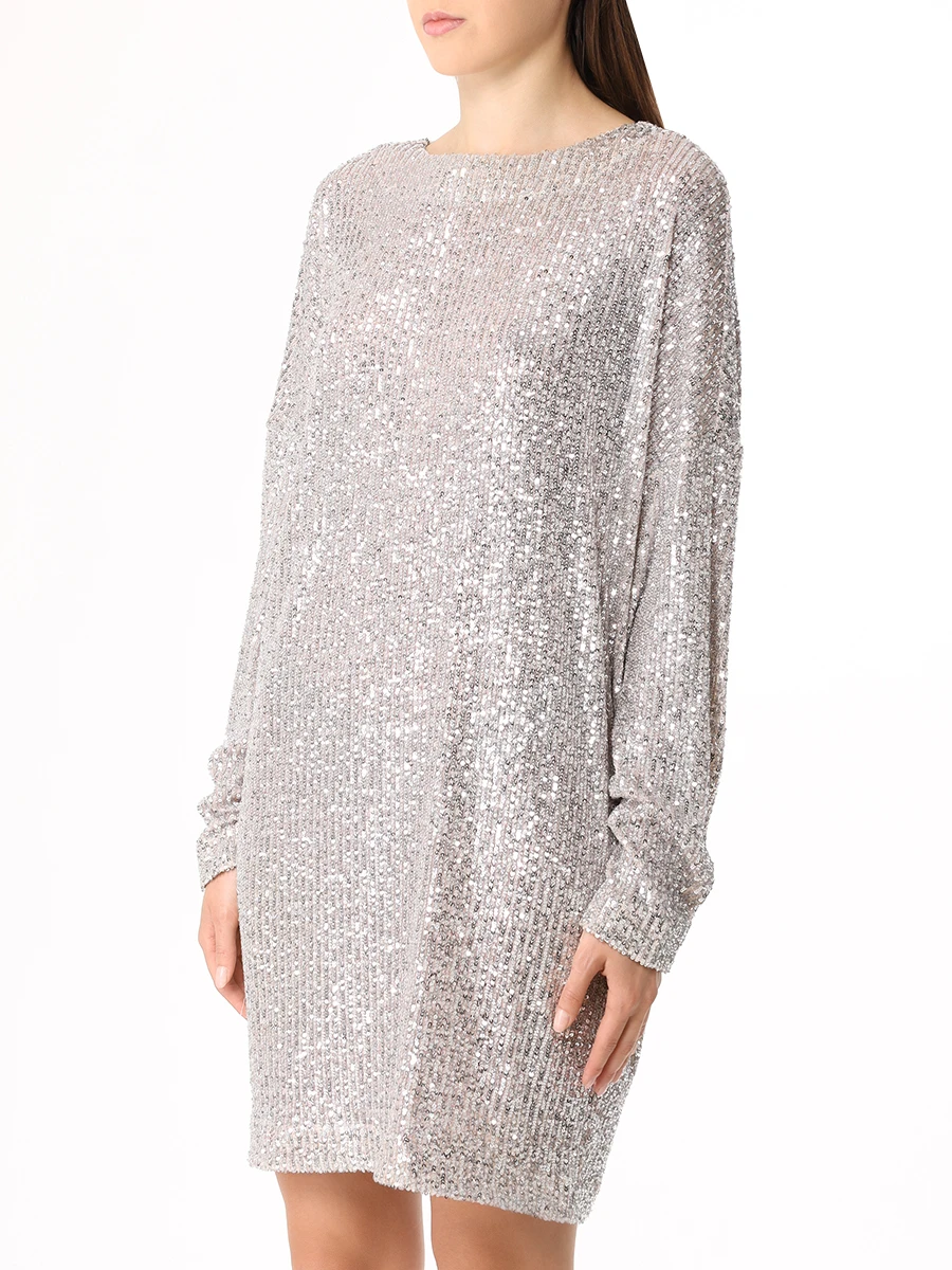 -Мини-платье из стрейч-ткани, расшитой пайетками, от IN THE MOOD FOR LOVE. -Модель свободного кроя с длинными рукавами, широким округлым вырезом горловины, вырезом сзади на пуговице. -Пайетки будут реагировать на каждое движение тела и создавать легкий искрящийся эффект. -Платье дополнено нижним базовым платьем в бельевом стиле на узких бретелях.
