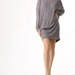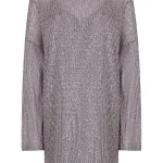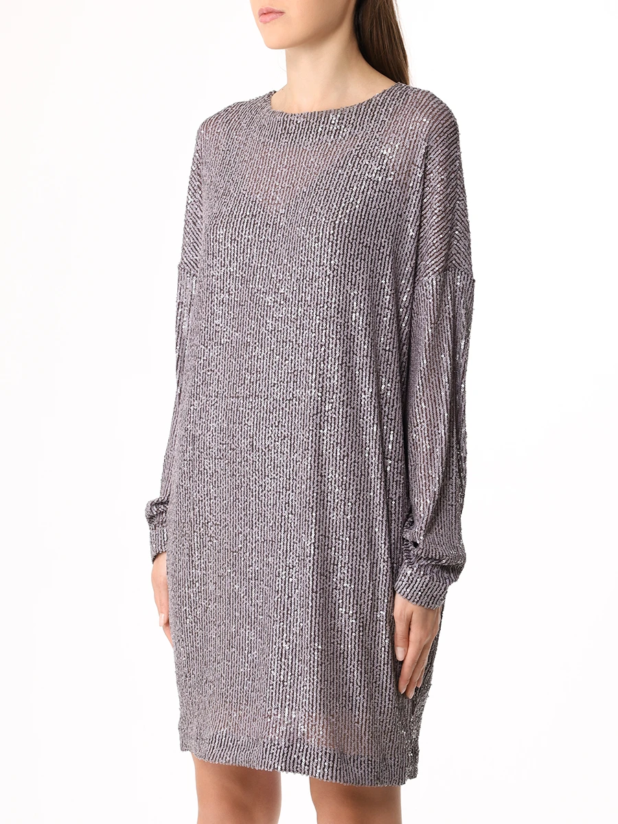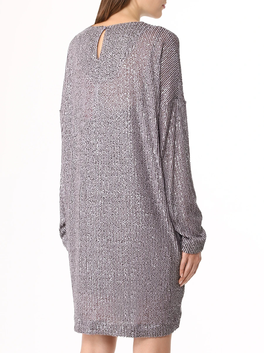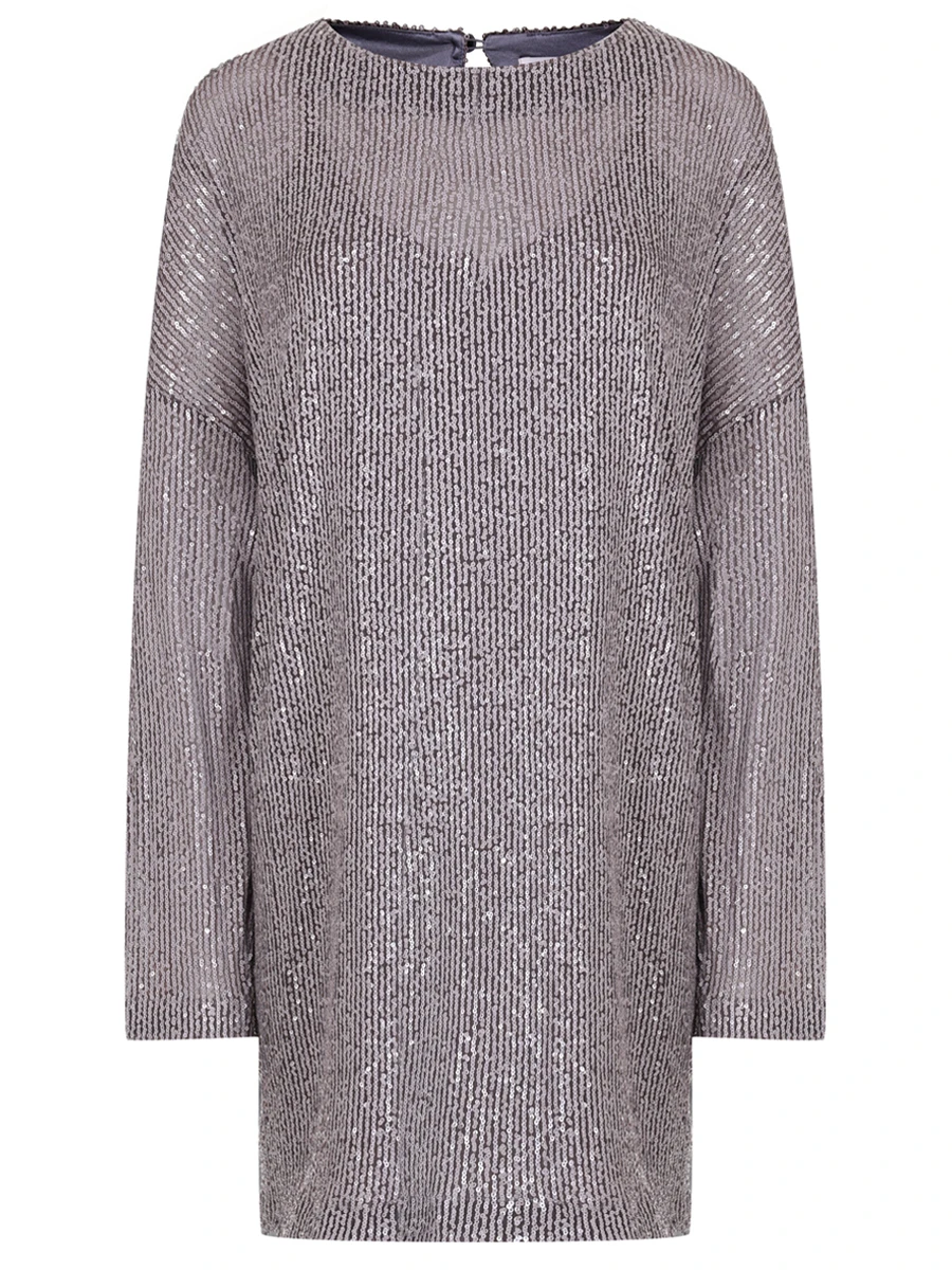-Мини-платье из стрейч-ткани, расшитой пайетками, от IN THE MOOD FOR LOVE. -Модель свободного кроя с длинными рукавами, широким округлым вырезом горловины, вырезом сзади на пуговице. -Пайетки будут реагировать на каждое движение тела и создавать легкий искрящийся эффект. -Платье дополнено нижним базовым платьем в бельевом стиле на узких бретелях.
