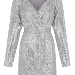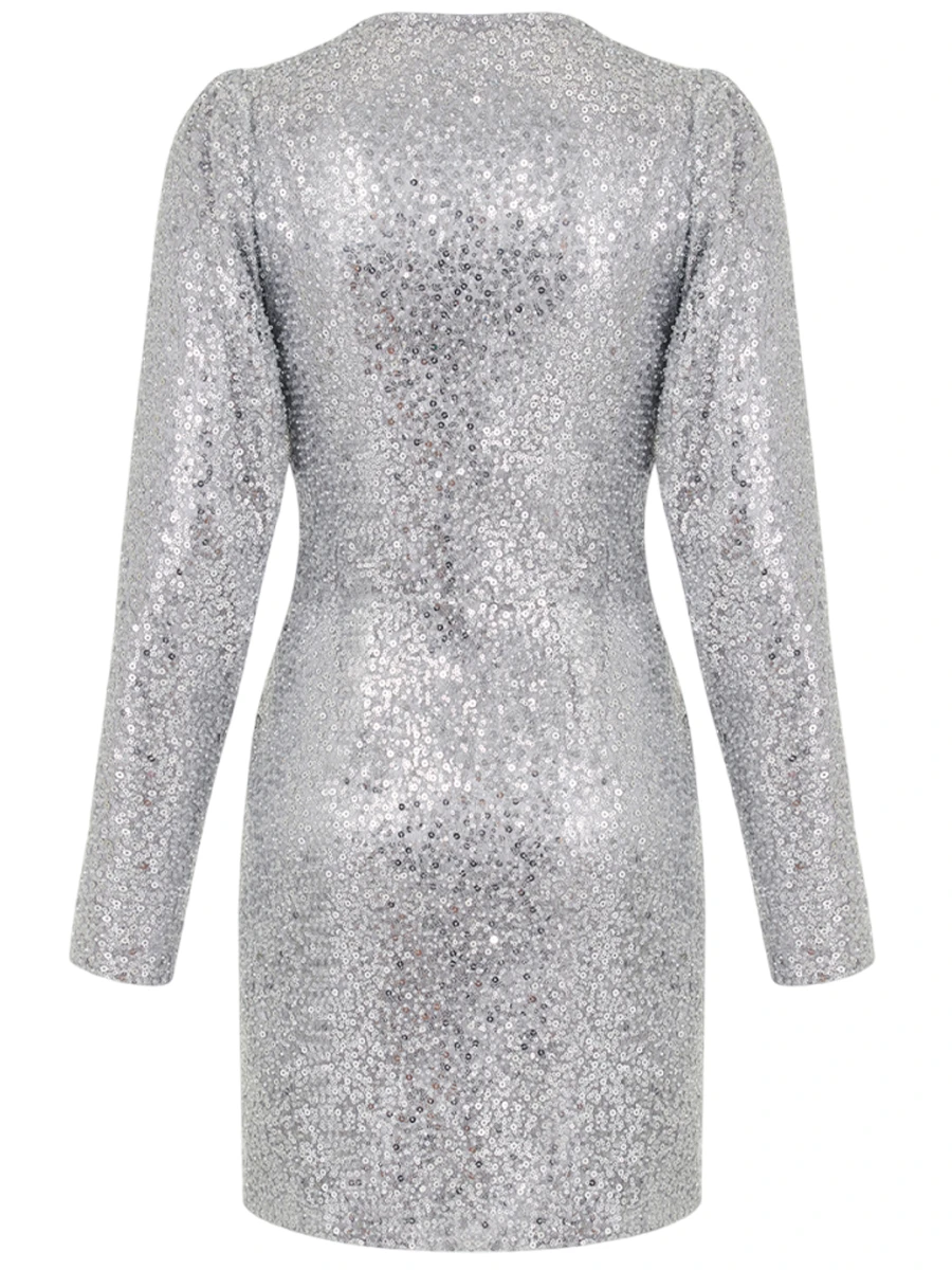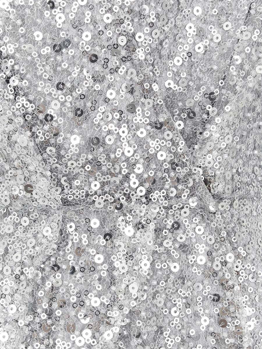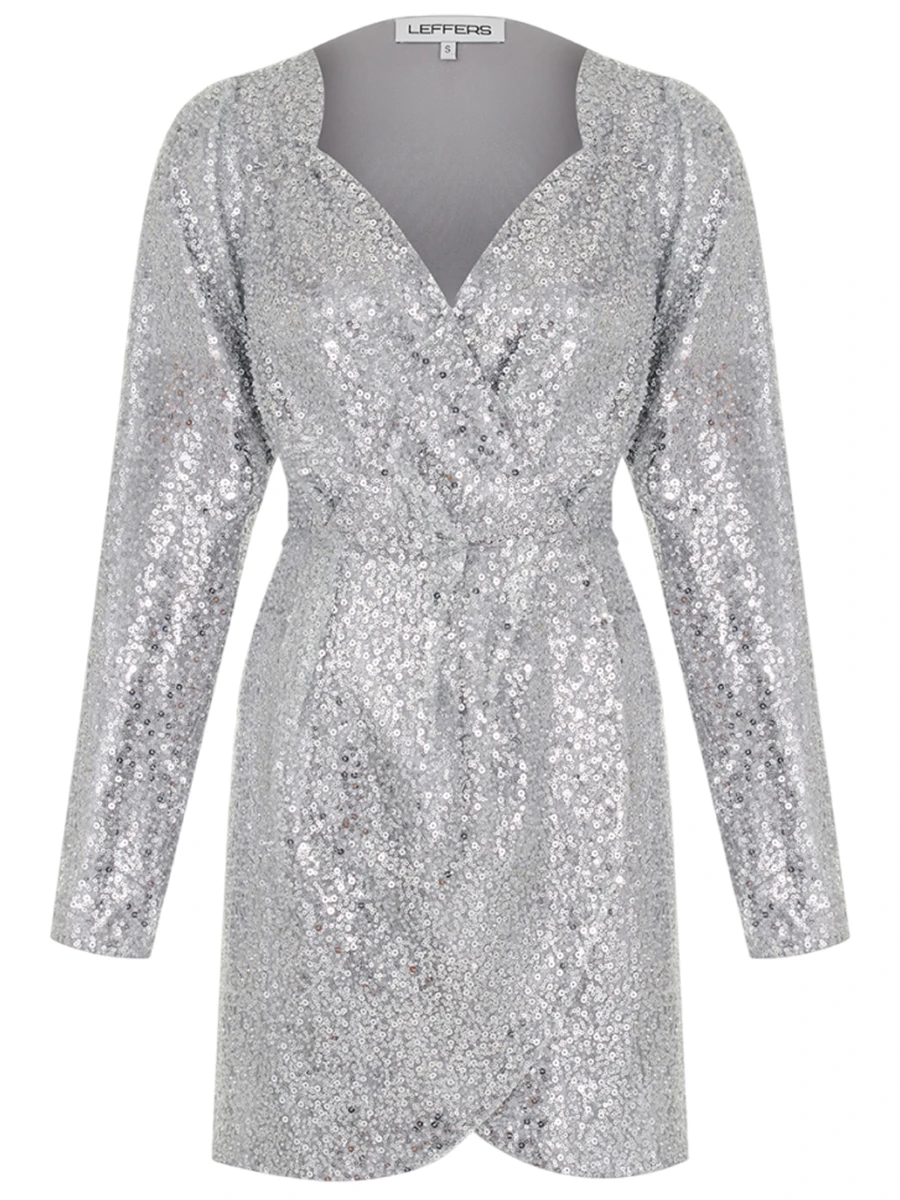 -Платье-мини, расшитое пайетками, в серебристом цвете от LEFFERS. -Идеальный крой, подчеркивающий талию и декольте, эффектная длина, переливающаяся ткань — это платье создано для привлечения внимания и комплиментов. -Сверкающее мини, расшитое тысячей паеток — мечта любой девушки. -Дополните образ аксессуарами и парой изящных туфель.
