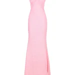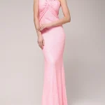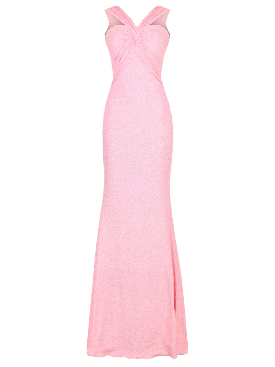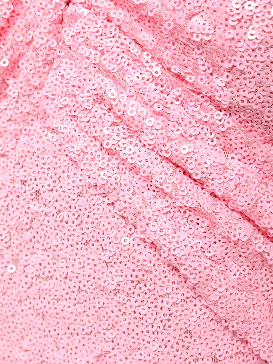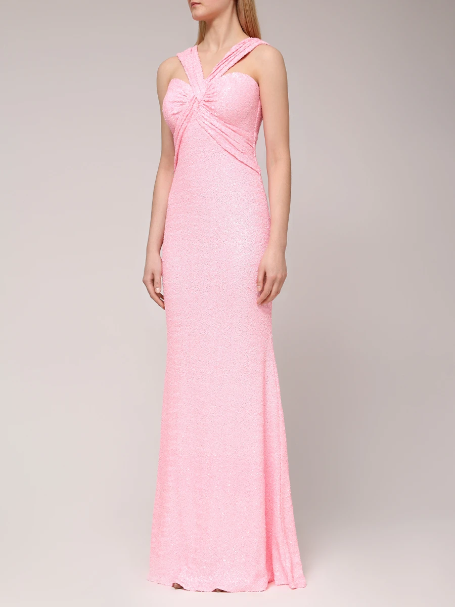 -Розовое платье, расшитое пайетками, от LEI LUI. -Модель приталенного кроя, деликатно облегающего талию и бедра, с широкими бретелями, формирующими скульптурный узел на груди, застежкой на потайную молнию на спине. -Вечерний образ дополнят базовые туфли-лодочки или босоножки на высоком каблуке.